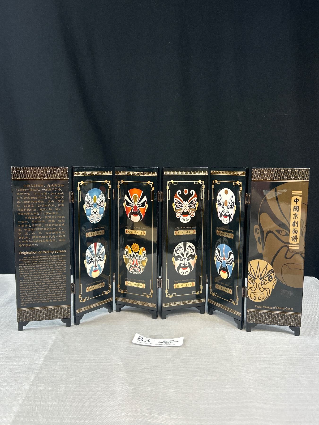 Faces of Peking Opera Mini Screen Black Laquor Approx 9.5" x 19"