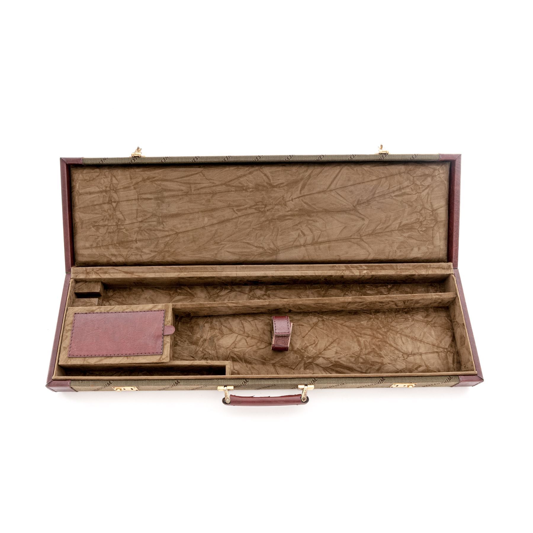 Factory Winchester Shotgun Case for a Model 23 SxS Shotgun, probably in 20 ga. or smaller, with replaceable blocks to accommodate 28'', 26'' or 25'' barrel lengths. Condition is excellent, both inside and out, with only one minor scrape to exterior fabric. Est.: $250-$400.
