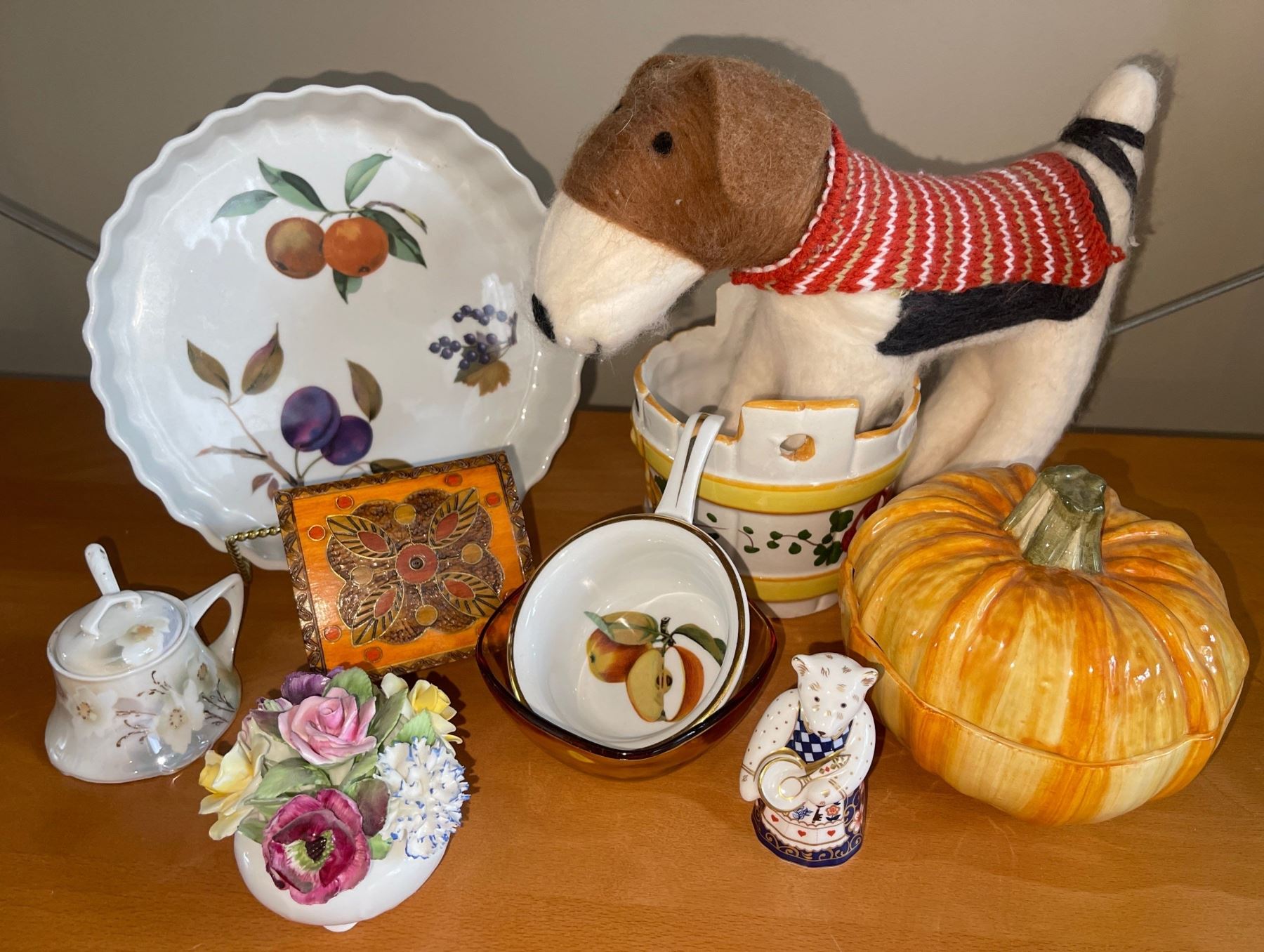 Fall/Autumn Themed Decor Glass Pumpkin, Stuffed Puppy, Bone China Items & More