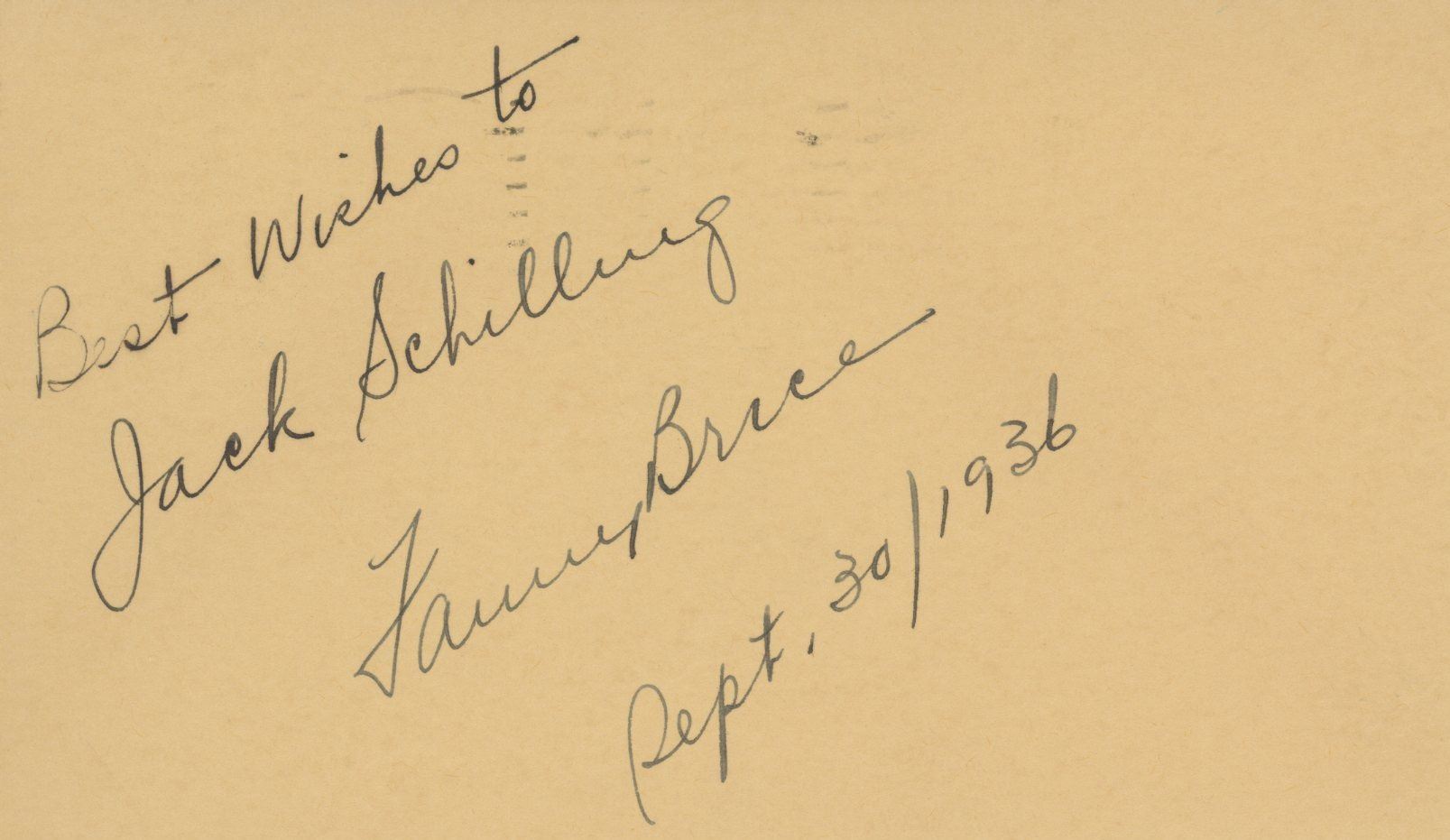 Fanny Brice signed note