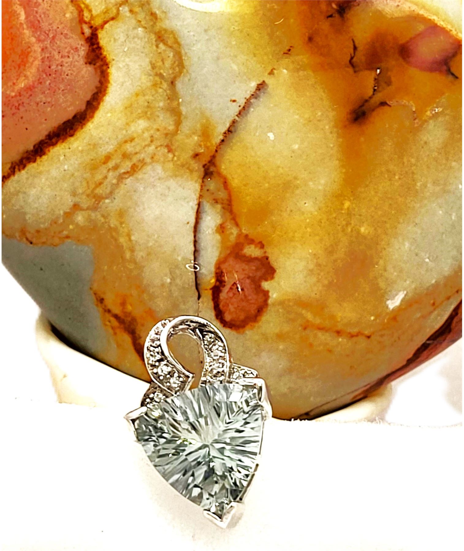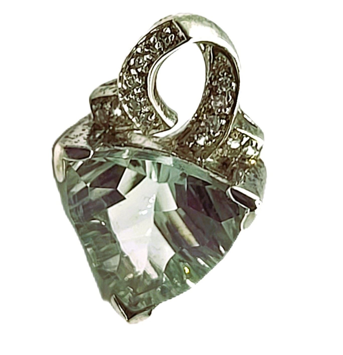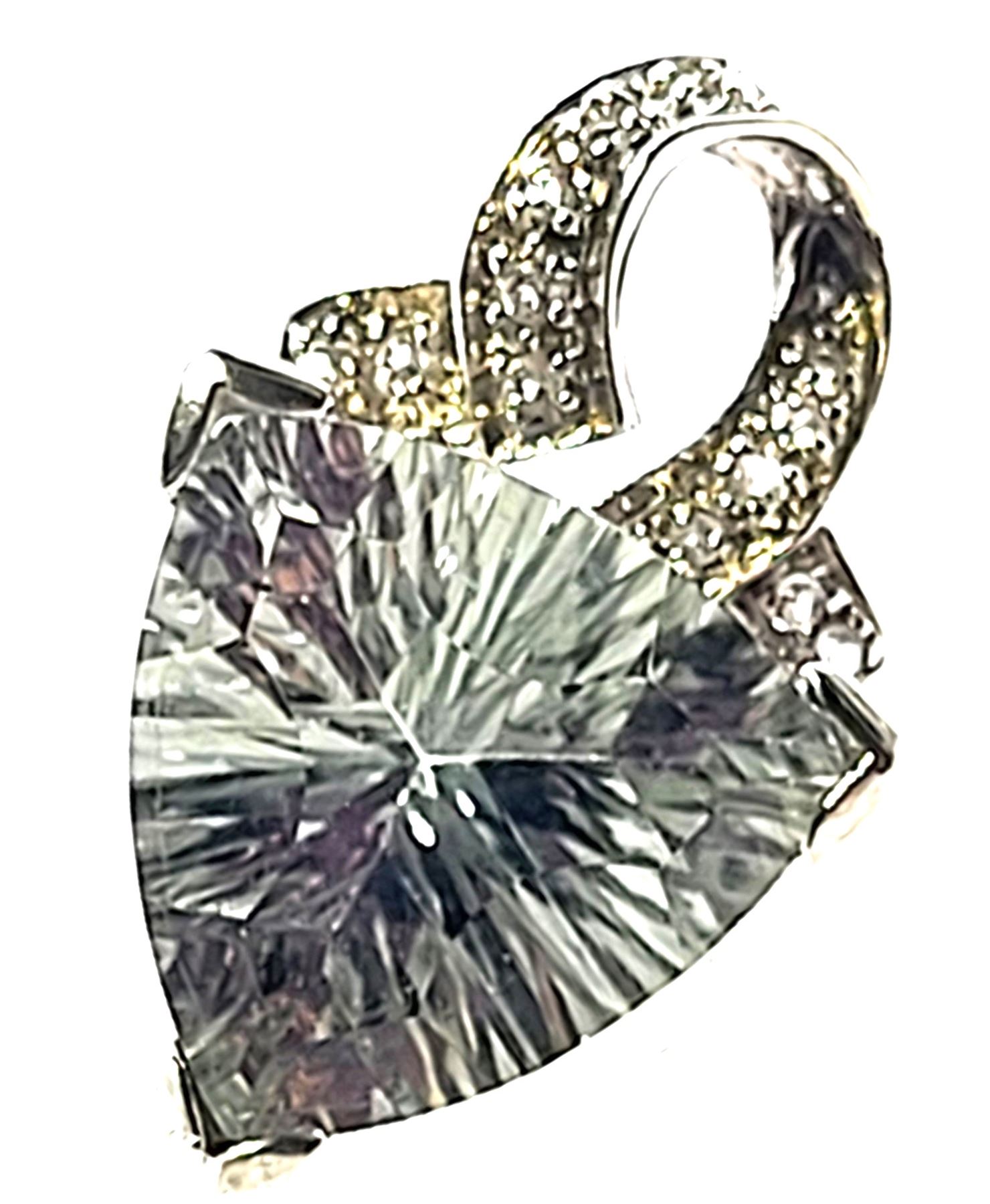 Fantasy-Cut Prasiolite Pendant, Clear Quartz Accent