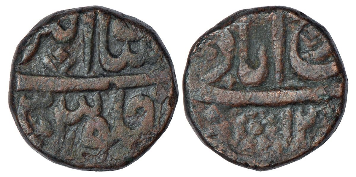 Farrukhabad, copper ½ anna, Farrukhabad mint, in the name of Muhammad Akbar II, AH (12)33/RY 12, KM 24, 11.35g.