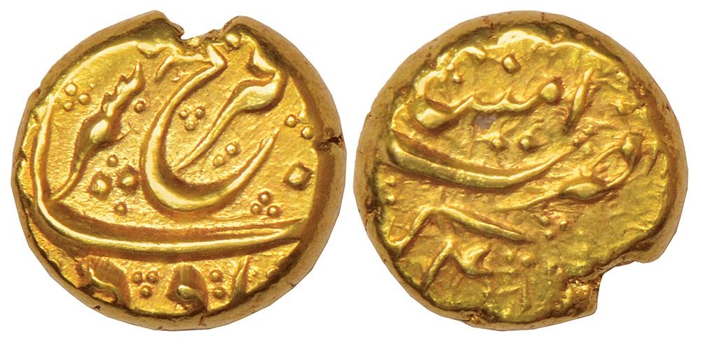 Farrukhsiyar (1713-1719 AD), gold pagoda, Imtiyazgarh mint, RY 4, KM 385.3, 3.34g.