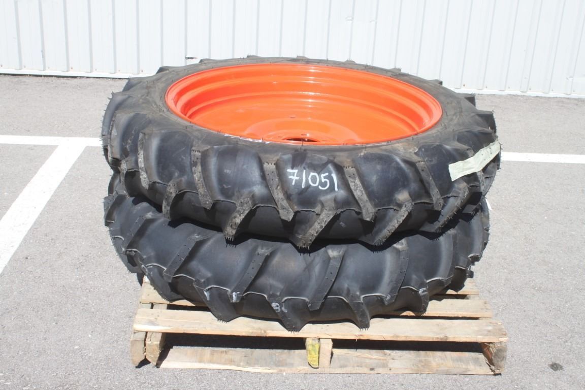 Firestone Pair of 9.5-32 tires on 6 bolt steel Kubota OEM rim, 100% tread, 5 1/4" pilot, 6 3/4" bolt circle,New