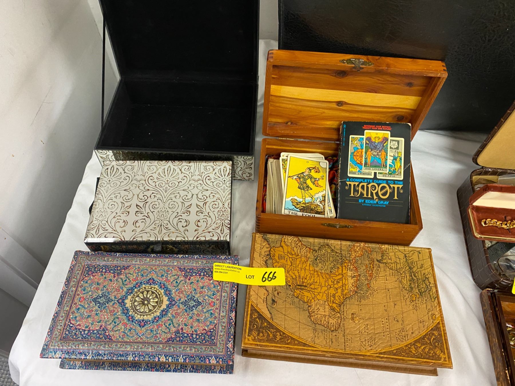 Five Curio Boxes with Tarot Cards and some costume jewellery