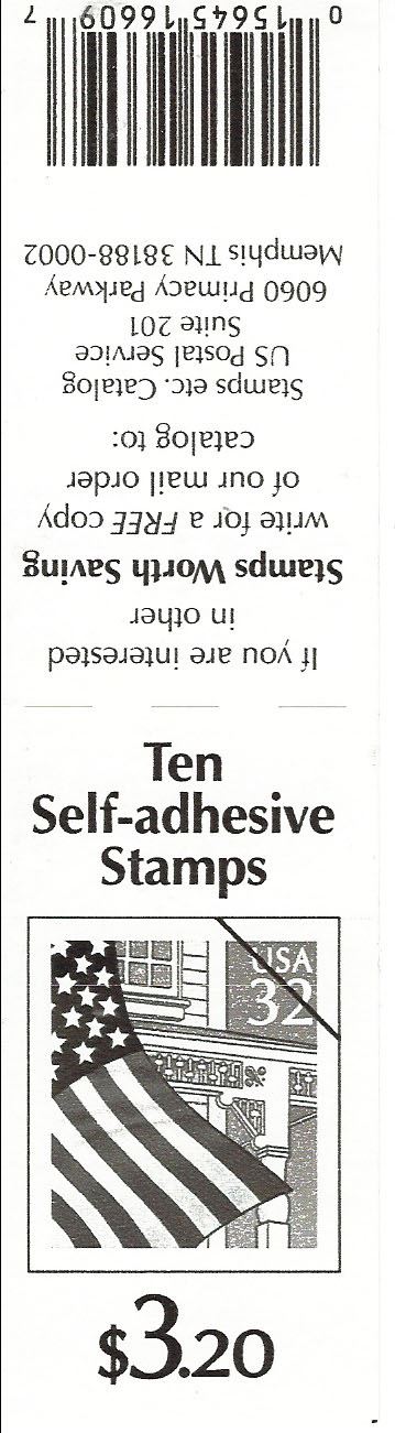 1995 10x 32c Flag Over Porch, self-adhesive stamps, U.S. #2915
