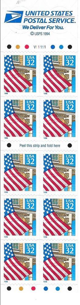 1995 10x 32c Flag Over Porch, self-adhesive stamps, U.S. #2915