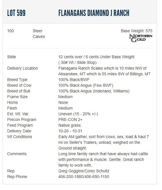 Flanagans Diamond J Ranch - 100 Steers; Base Weight: 575