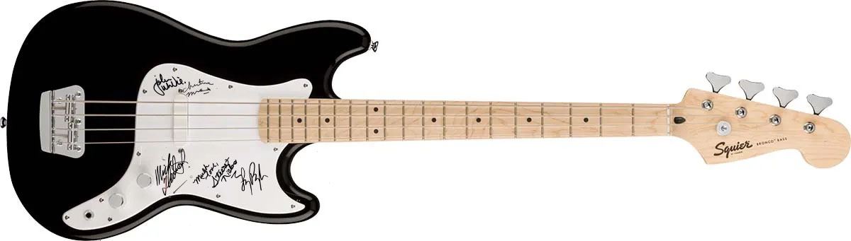 Fleetwood Mac band signed guitar autographed by Mick Fleetwood, Stevie Nicks, John McVie, Christine McVie and Lindsey Buckingham