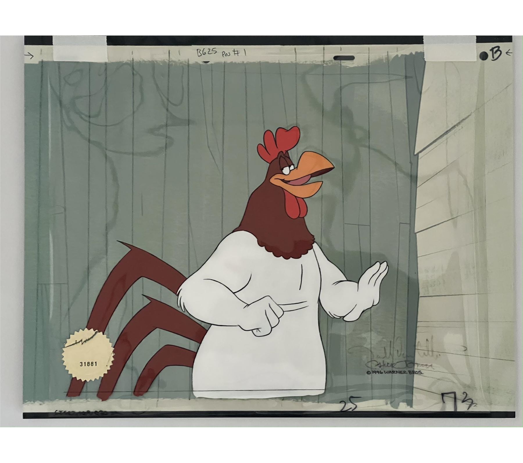 Foghorn Leghorn Warner Brothers animation production cel, 1996 double signed by animation legend, Chuck Jones and Darrell Van Citters, the director. With WB official cert. 11x14 inches