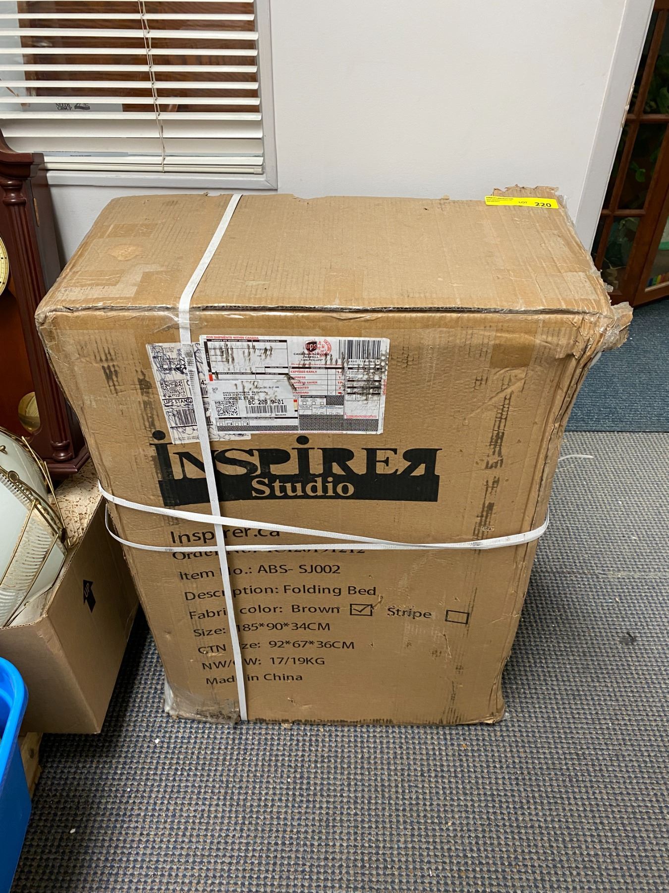 Folding Bed by Inspirer Studio - Brown Fabric - Size 185cmx90cmx34cm