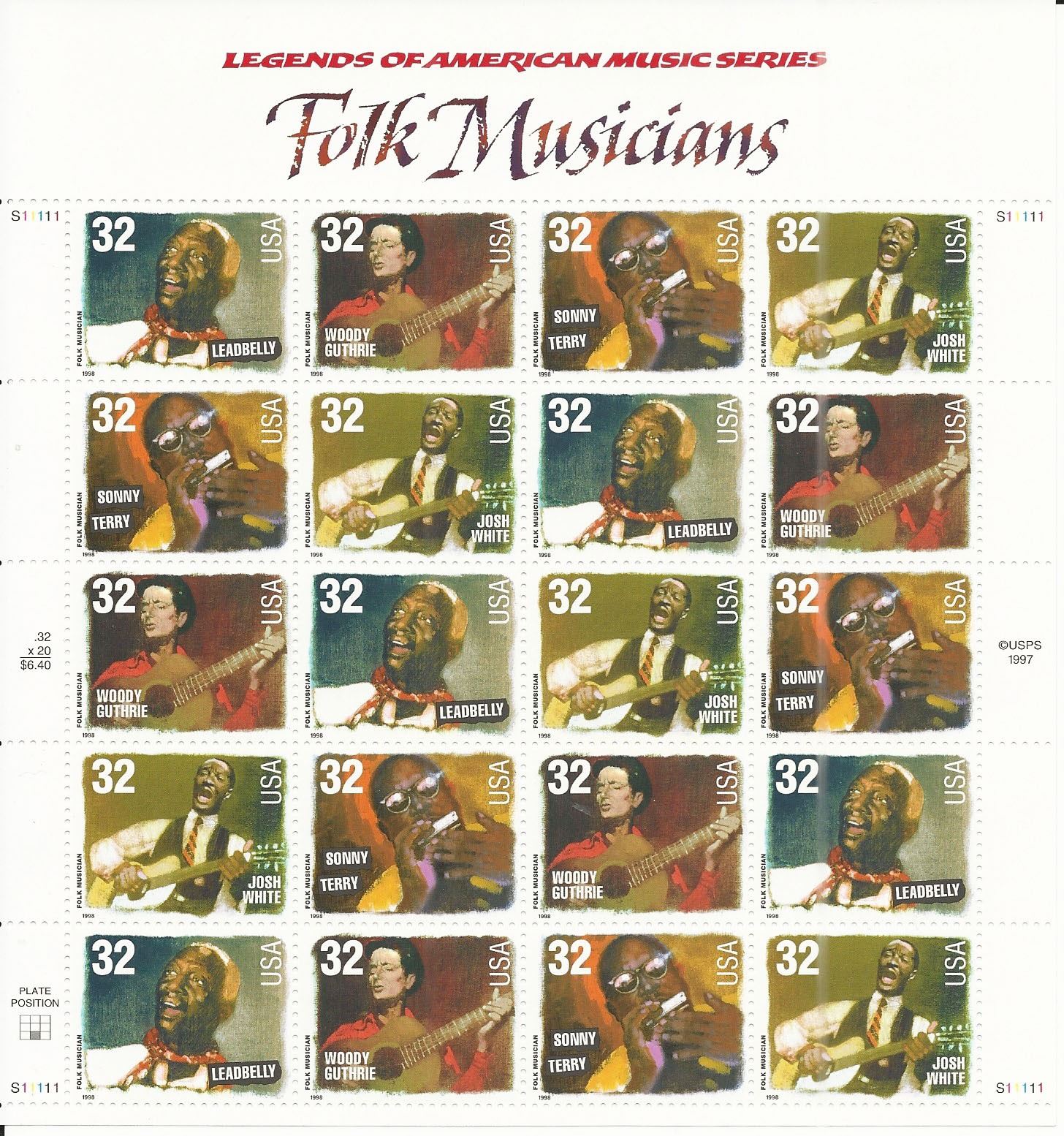 Folk Musicians - Sheet of Twenty 32 Cent Stamps - Scott 3212-5 by USPS