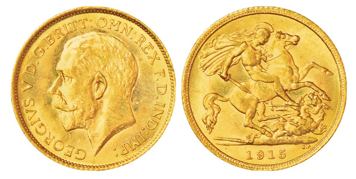 Foreign: Great Britain, George V (1910-1936 AD), gold ½ sovereign, 1915, KM 819, 4.01g. Obv: Uncrowned Portrait bust of King George V left, legend around. Rev: St. George on horseback slaying the dragon right, date in exergue.