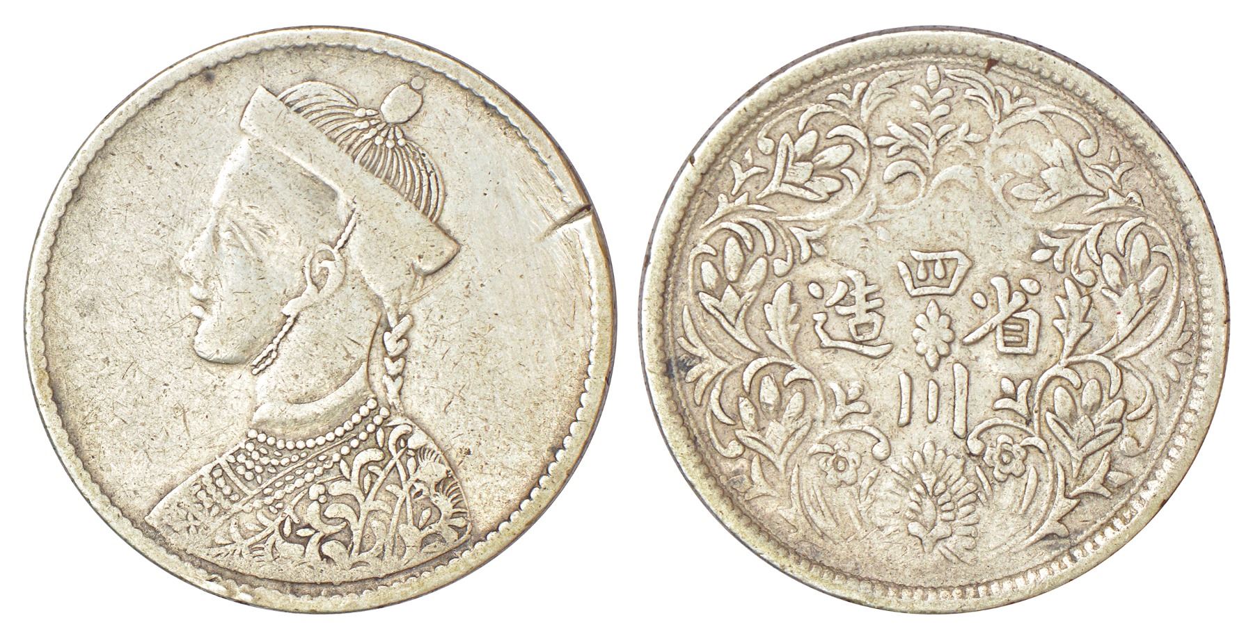 Tibet, silver rupee, ND (1911-1916 AD), KM Y3.2, 11.23g. Obv: Small portrait bust of king with collar. Rev: Four Chinese ideograms read top to bottom, right to left with vertical rosette in centre, all surrounded by floral wreath. Edge little knock,