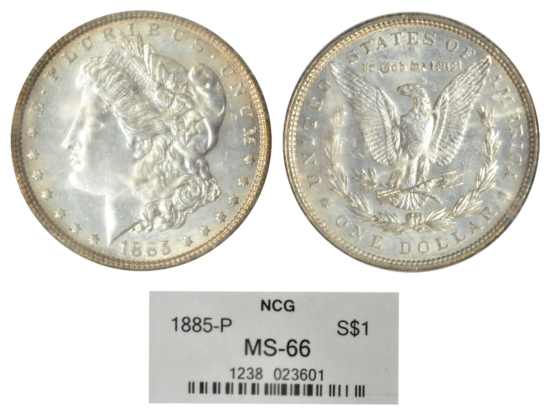 United States of America, silver morgan dollar, 1885, without mintmark, KM 110. Obv: Liberty head facing left, date below. Rev: Eagle holding arrow and an olive branch, within wreath.