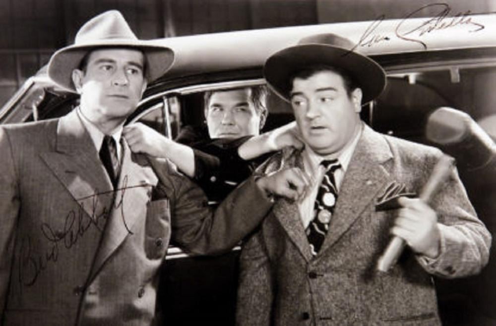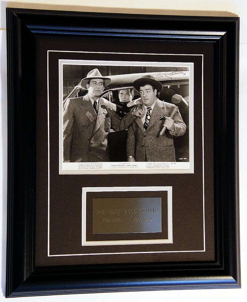 17 x 20 Inch Black Frame with Silver Plate & UV Glass and Black Matting Plate Reads: Bud Abbott & Lou Costello – 1895-1975 1906-1959. Signed: Bud Abbott & Lou Costello