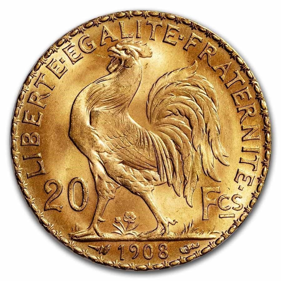 France Gold 20 Francs French Rooster Coin (1899-1914) AU AGW .1867 oz