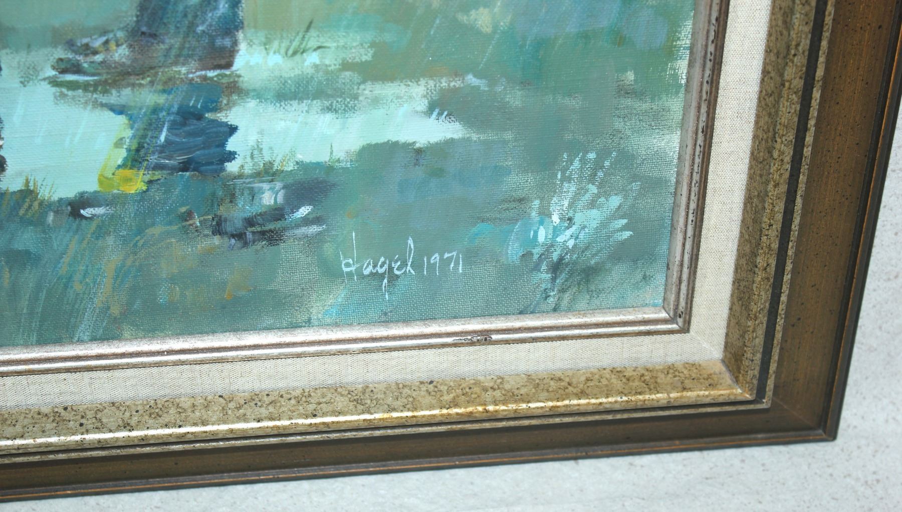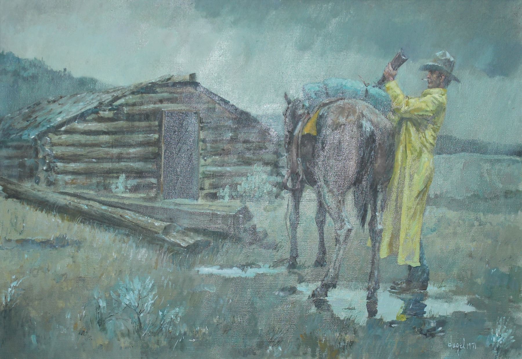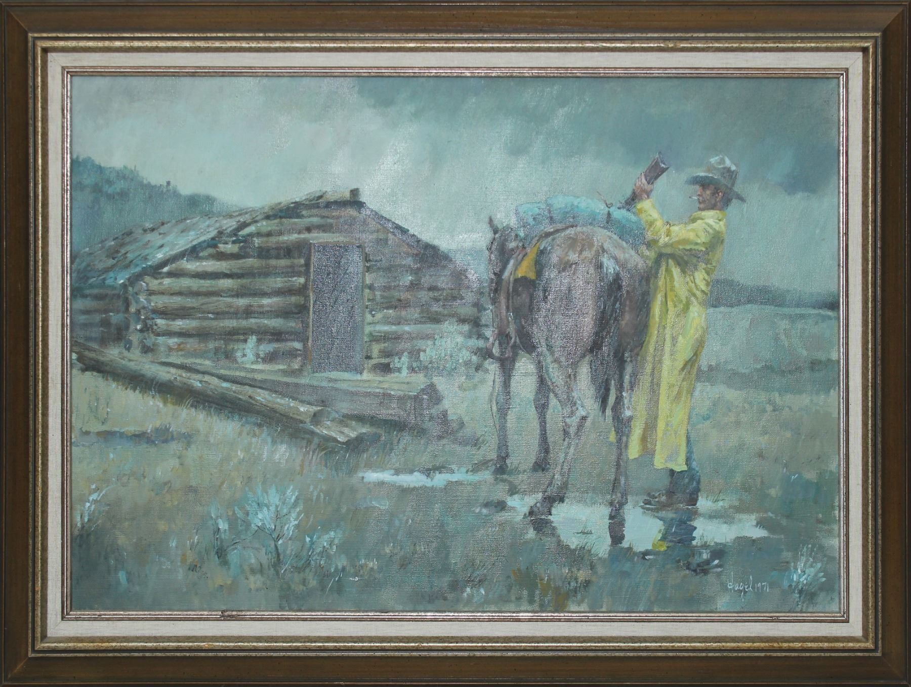 Frank Hagel (1933-2024), Entitled "Comin' and Goin", Oil on canvas, dated 1971 and signed in right. Dimentions 24"x36".