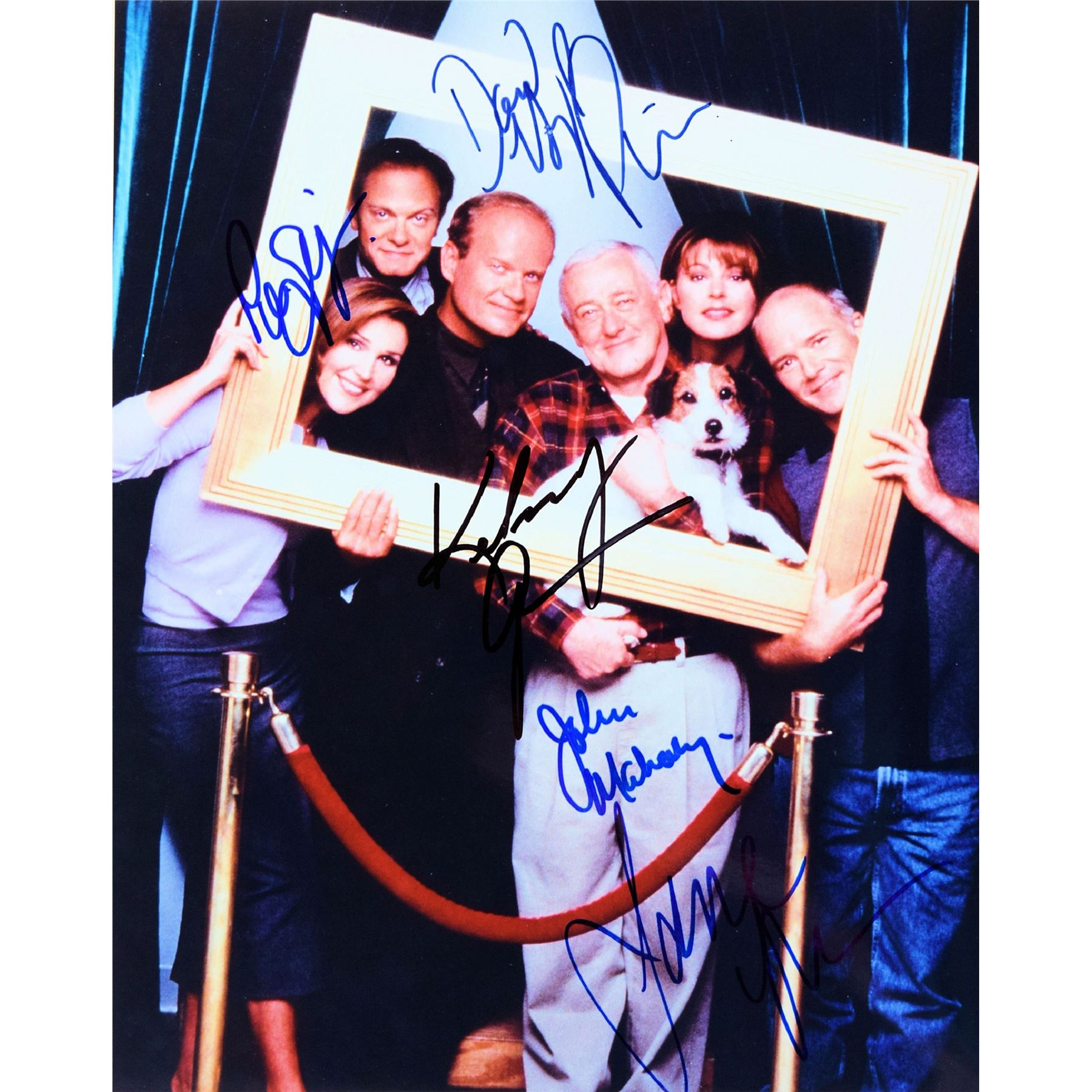 8 in. by 10 in. Promotional cast photo from Frasier autographed by John Mahoney, Peri Gilpin, Jane Leeves, David Hyde Peirce, and Kelsey Grammer.