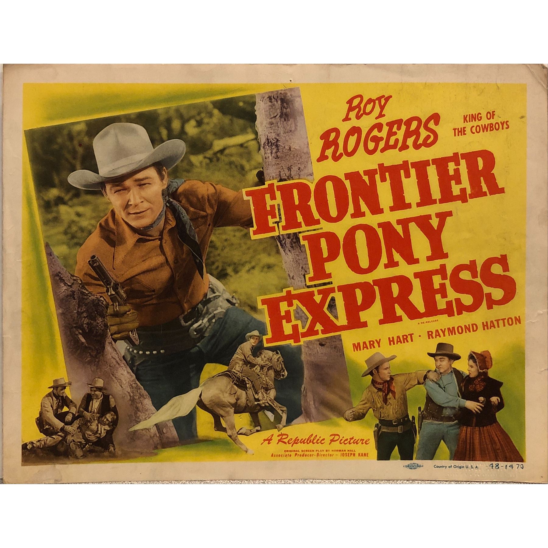 Frontier Pony Express 1948R Original Vintage Lobby Card on Heavy Card Stock. 11x14 inches