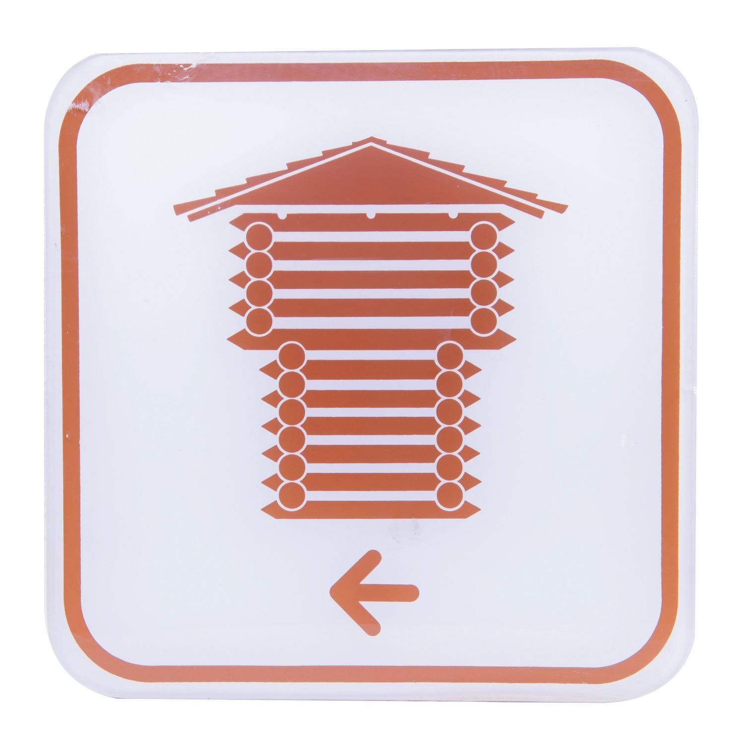 (Walt Disney World, c.1980s) A vintage Park-used Frontierland Utilidor directional sign from Walt Disney World. The Utilidor is the color-coded system of tunnels running under the Park allowing Cast Members to move throughout the Park and perform maintenance tasks without being seen by guests. The acrylic sign has a vinyl backing depicting a Fort Sam Clemens blockhouse tower icon in brown trim, and would have guided the way toward Frontierland. Measuring 14.5"x14.5", the Park-used piece displays in very good condition with a minor spot of peeling, scuffs, scratches, paint remnants and adhesive retention to the perimeter of the reverse.