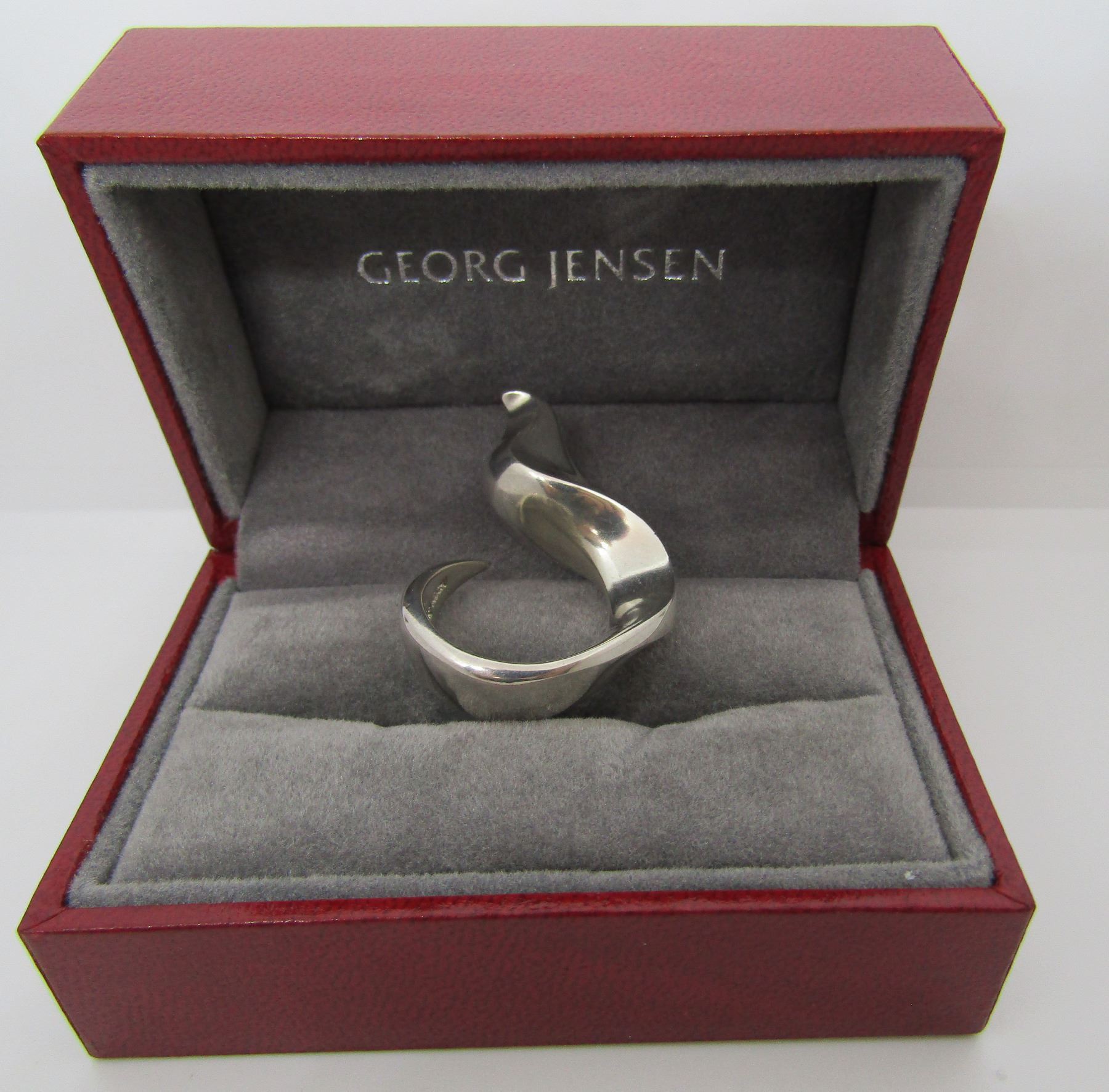 GENUINE SIGNED "GEORG JENSEN, 477, 925S DENMARK, ASCH". ALLAN SCHARFF. SIZE 7. MEASURE 38MM BY 26MM. WEIGH 25.7 GRAMS. NEW IN JENSEN BOX. USA SHIPPING $10.