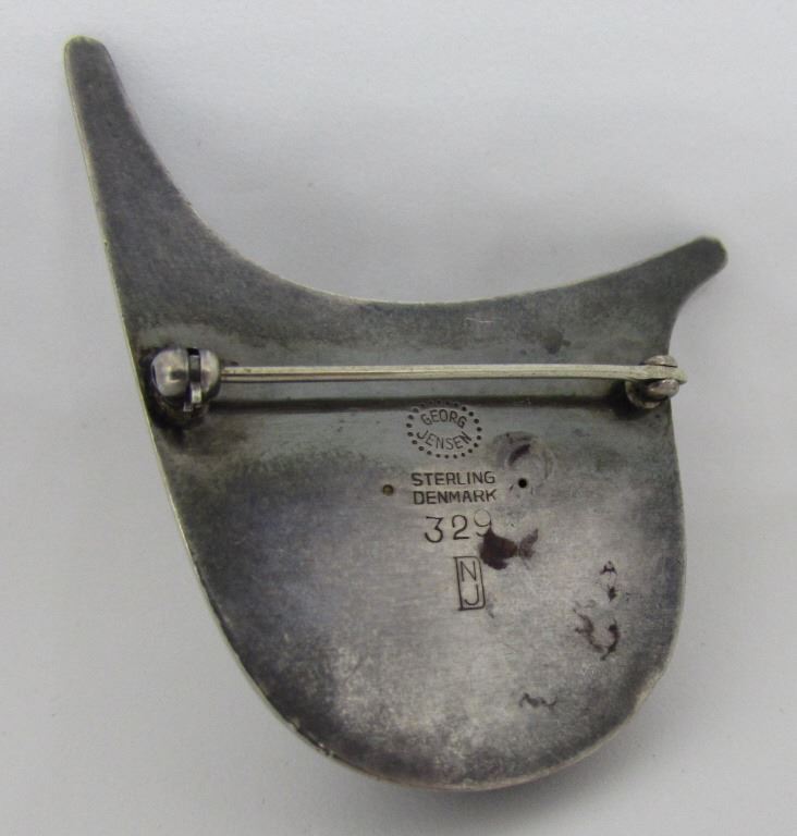 VINTAGE ESTATE MID CENTURY MODERN SIGNED "GEORG JENSEN STERLING DENMARK 329 NJD". NANNA JORGEN DITZEL. WITH GEORG JENSEN BOX. MEASURES 41MM BY 48MM. WEIGHS 13.8 GRAMS. USA SHIPPING $10.