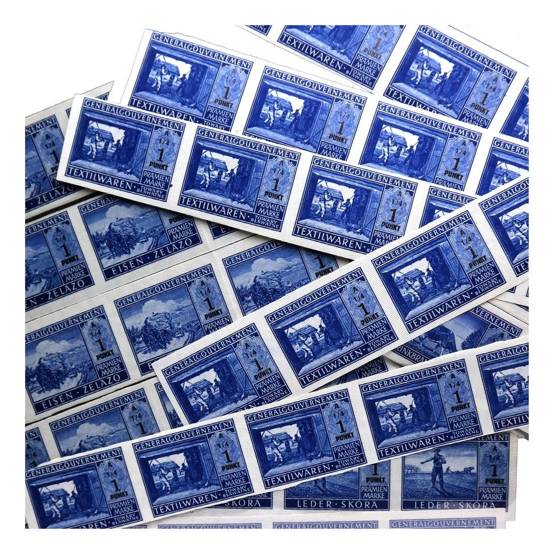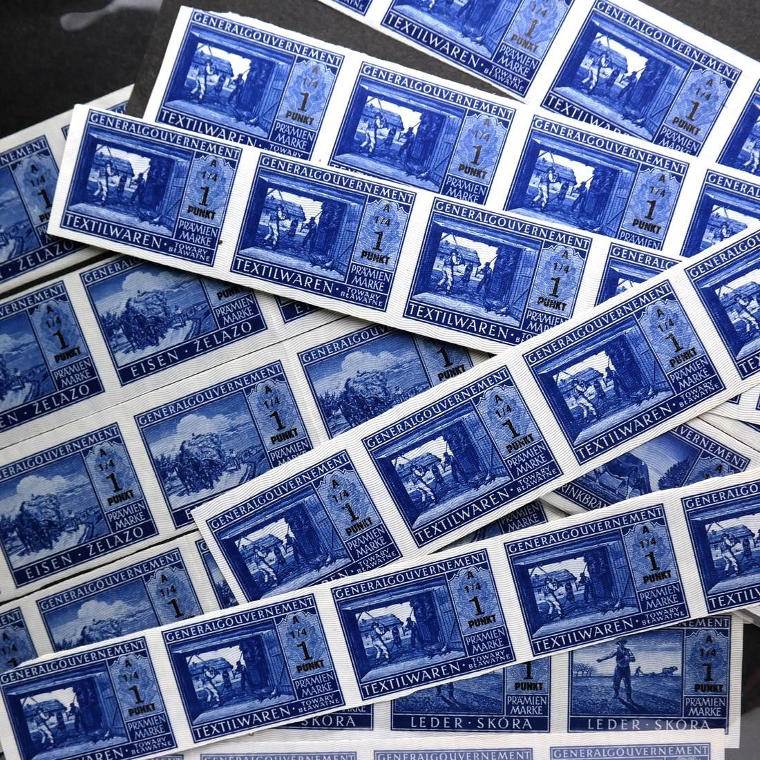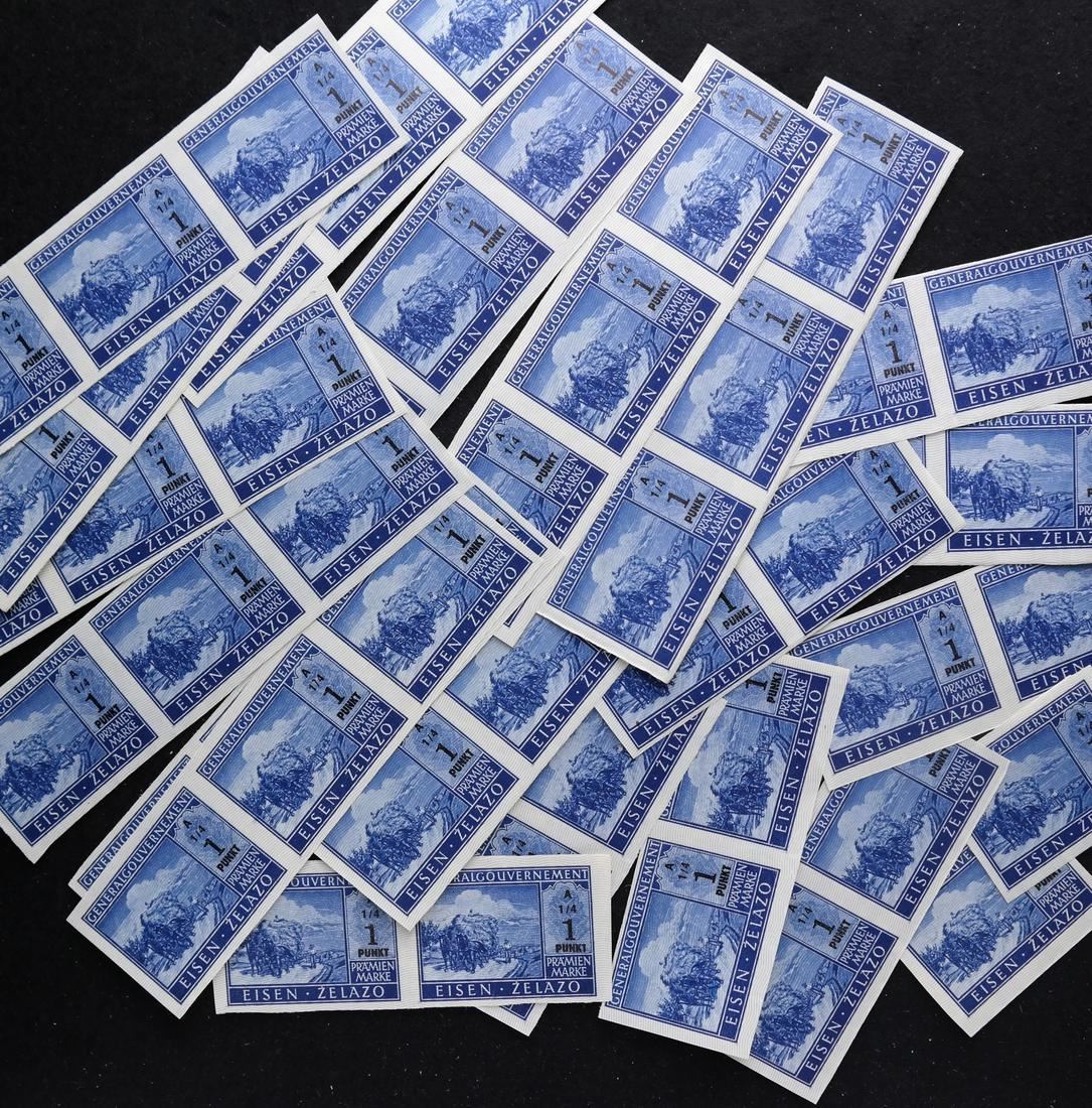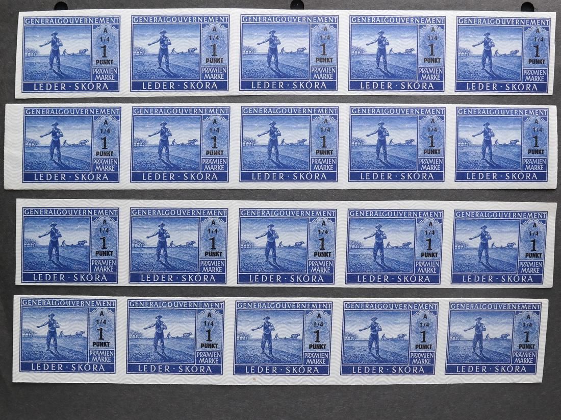 Accumulation of complete sets of all seven types of the 1 Punkt series A 1/4 in imperforate pairs up to strips of five, unused without gum as issued, includes one pair and one strip of three of the Waschmittel stamps, two pair of the Zigaretten, and then large quantities of all five other types, generally sound and VF (approx 510 stamps).