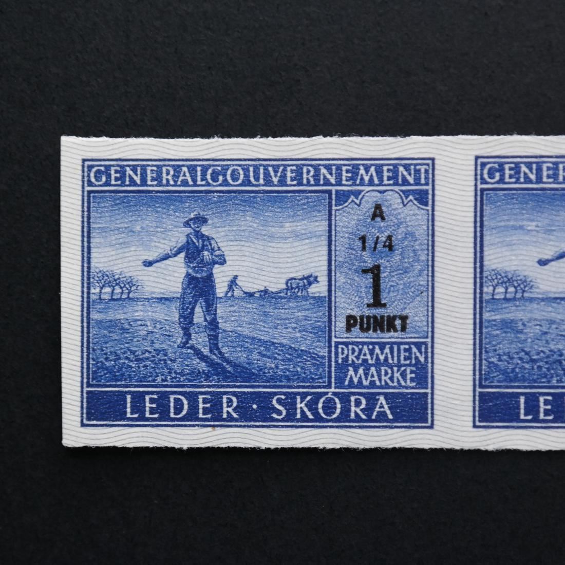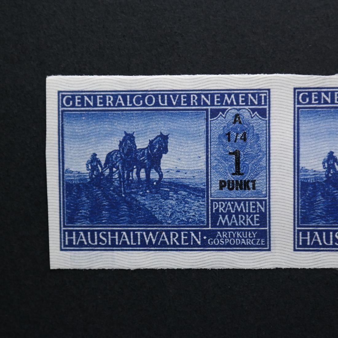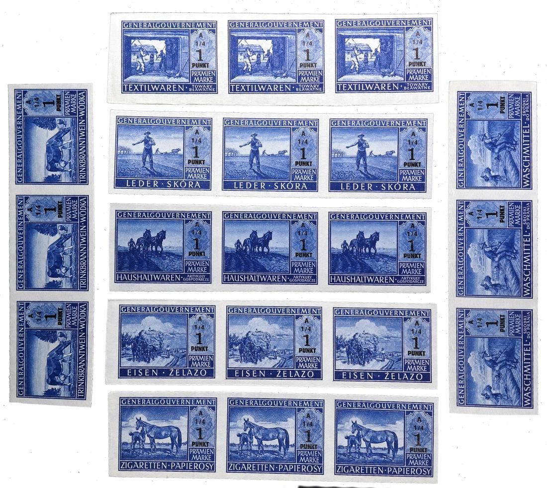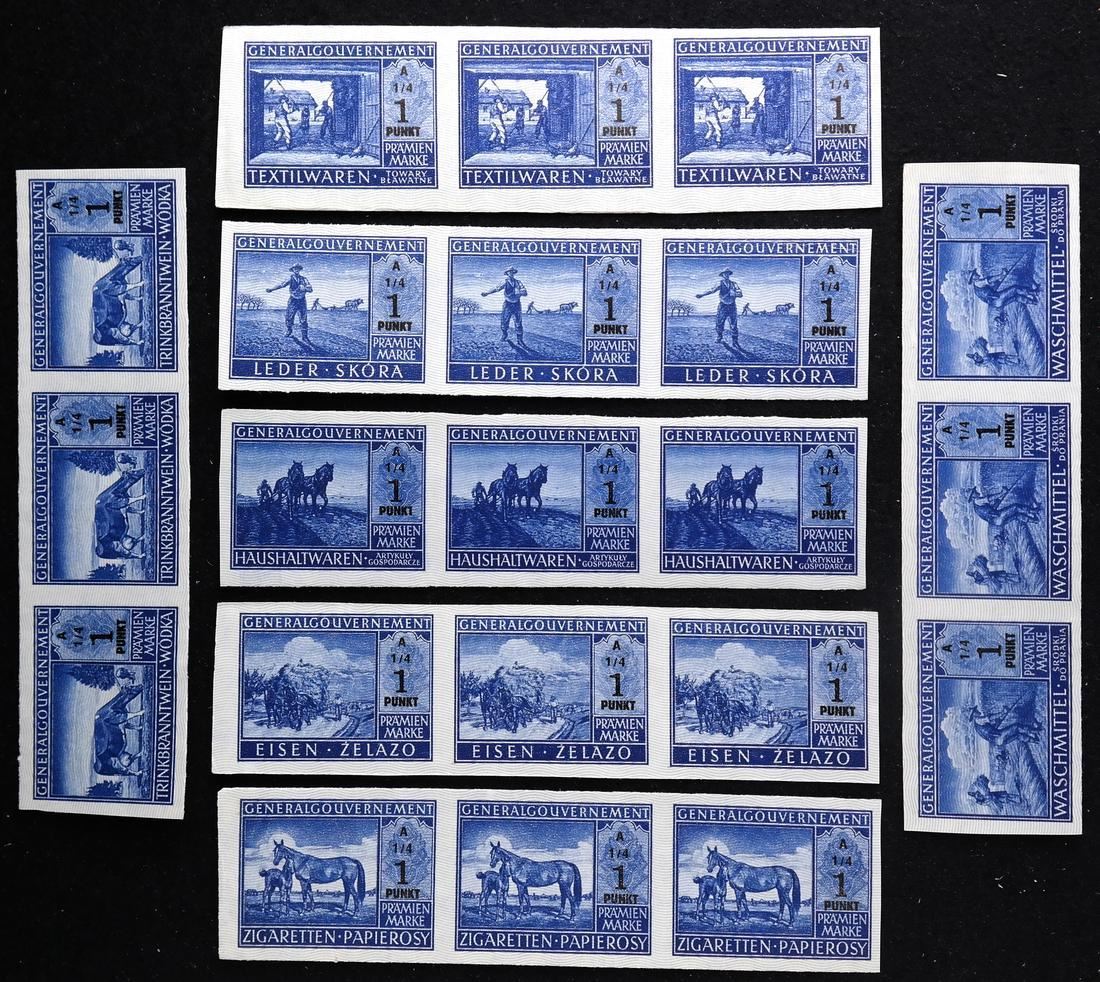 Complete set of all seven types of the 1 Punkt series A 1/4 in imperforate strips of three, unused without gum as issued, sound and VF.