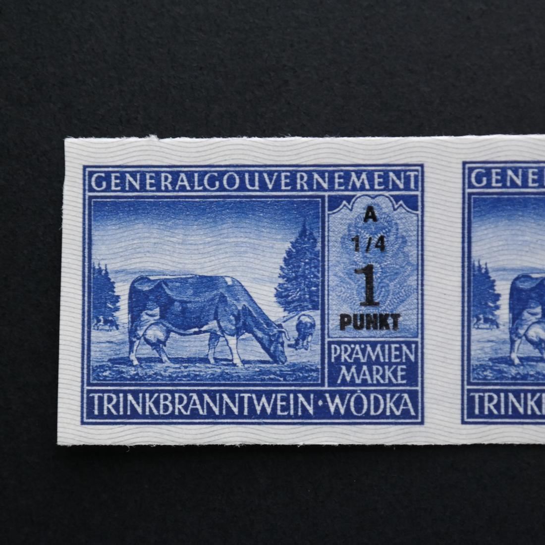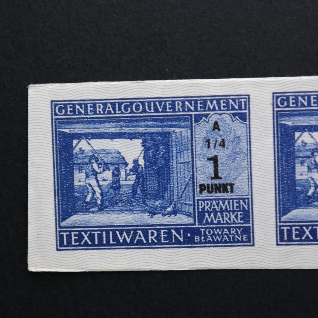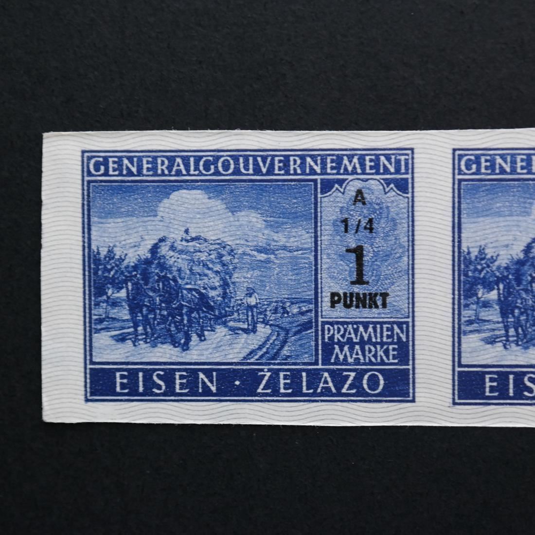 Complete set of all seven types of the 1 Punkt series A 1/4 in imperforate strips of three, unused without gum as issued, sound and VF.