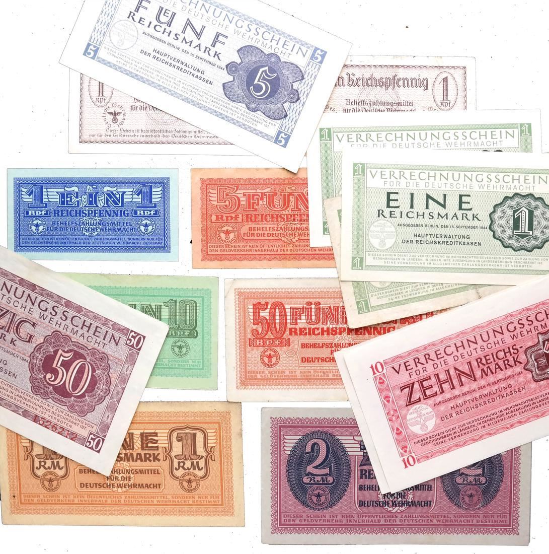 Includes the 1940 1rpf (2), the 1941 1rpf, 5rpf, 10rpf, 50rpf, 1RM and 2RM (2), and the 1944 1RM (3), 5RM, 10RM (2) and 50RM, generally sound and Fine to Uncirculated.