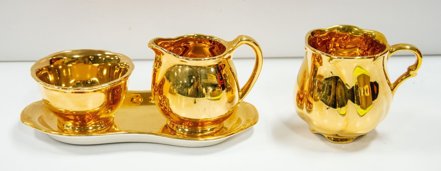 GOLD CREAMER, SUGAR & TRAY BY CROWN DEVA