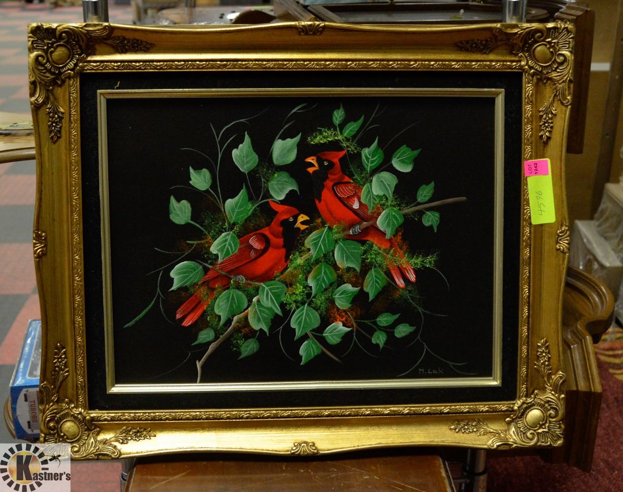 GOLD FRAMED OIL ON CANVAS BIRD PAINTING