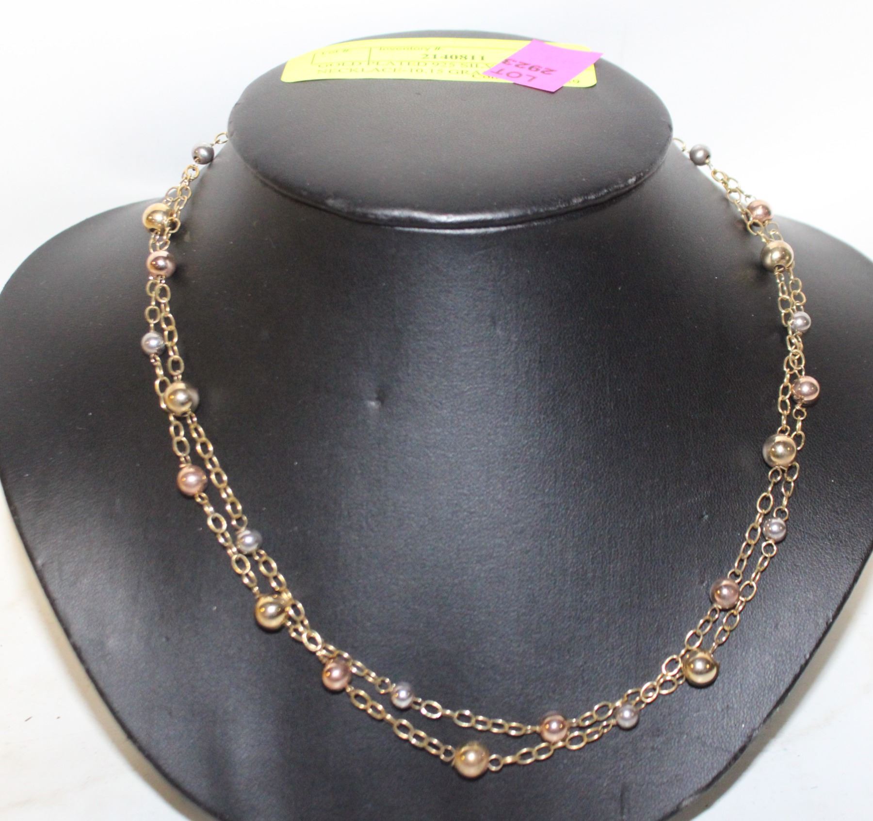 GOLD PLATED 925 SILVER BEAD NECKLACE-10.15 GRAMS