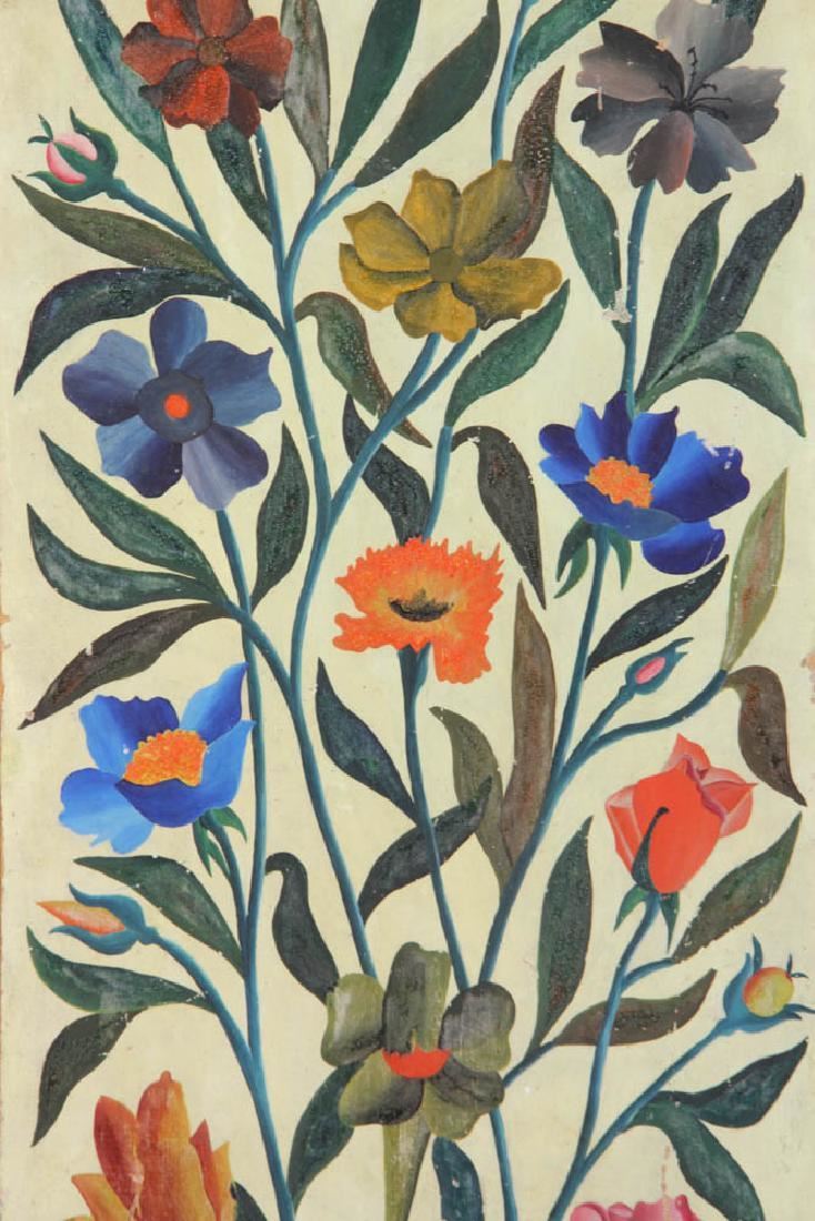 Gabriel Alix (Haitian, 1930-1998), flowers on a pale green background, oil on masonite mounted on board, signed L/L, 20" x 10 1/2" on backing 21 1/4" x 11 1/2". Corner chips.