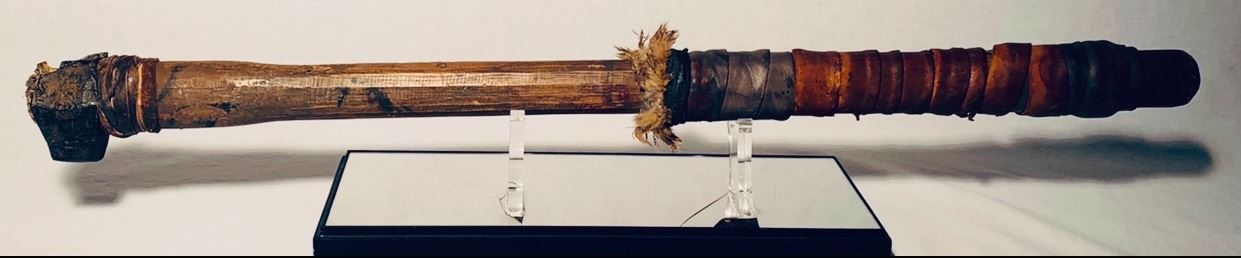 Original weapon handle used by a "Wildling" in the fantasy drama television series 'Game of Thrones' (2011 - 2019), where nine noble families fight for control over the mythical lands of Westeros, while an ancient enemy returns after being dormant for thousands of years.