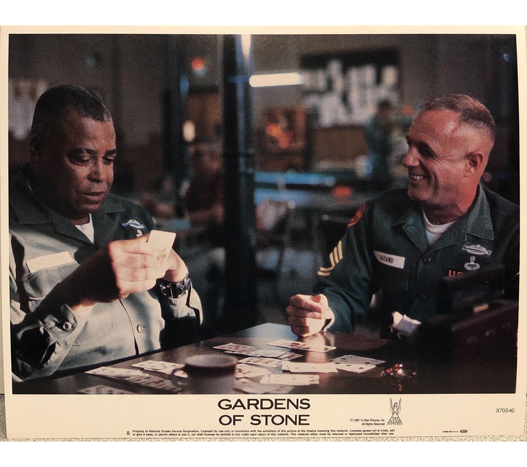 Gardens of Stone original 1987 vintage lobby card. on heavy card stock. 11x14 inches