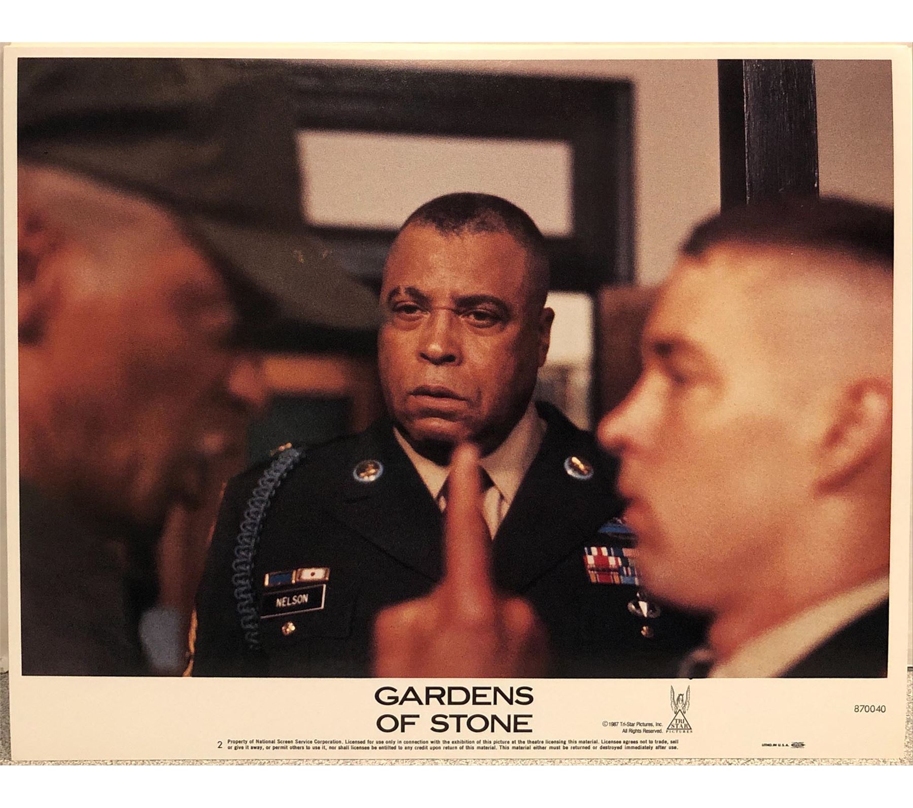 Gardens of Stone original 1987 vintage lobby card. on heavy card stock. 11x14 inches