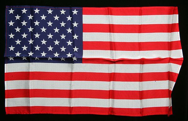Gemini X Flown Flag. This flag measures 11 x 16" and was acquired personally by the crew and carried on Gemini X. The accompanying signed COA reads, "This American Flag (11x 16") was flown aboard Gemini X, launched July 18, 1966, splashdown July 21, 1966. This flag was given to me by the crew upon their return and has been in my possession ever since." The consignor worked for NASA in procurement ordering designated items to be flown. He also worked with the crews upon their return and was often given mementos, including this unique flag. Great condition. A nice dramatic display piece of flown memorabilia.