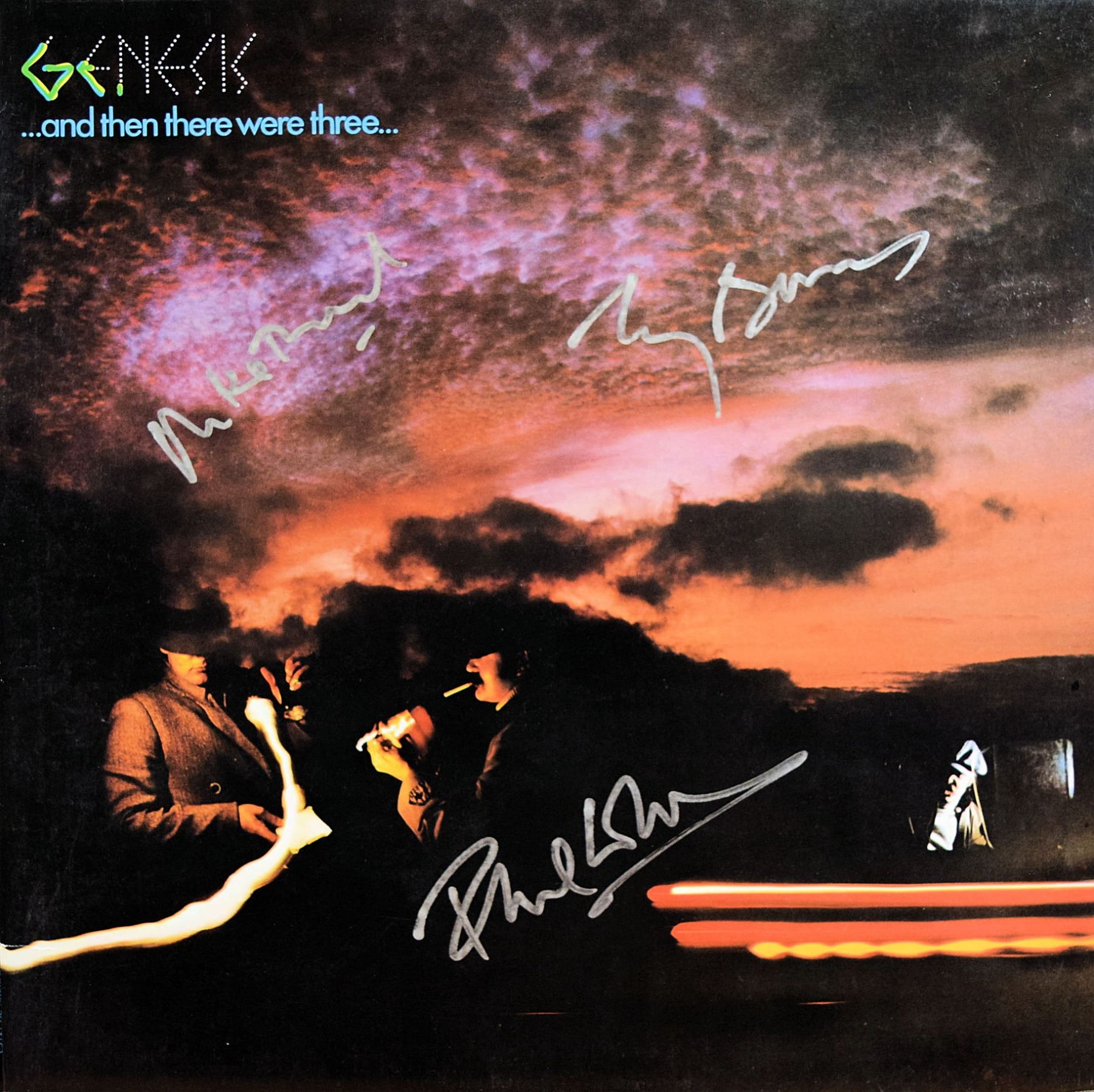Genesis 1973 And Then There Were Three… album. Signed: Mike Rutherford, Phil Collins, and Tony Banks.