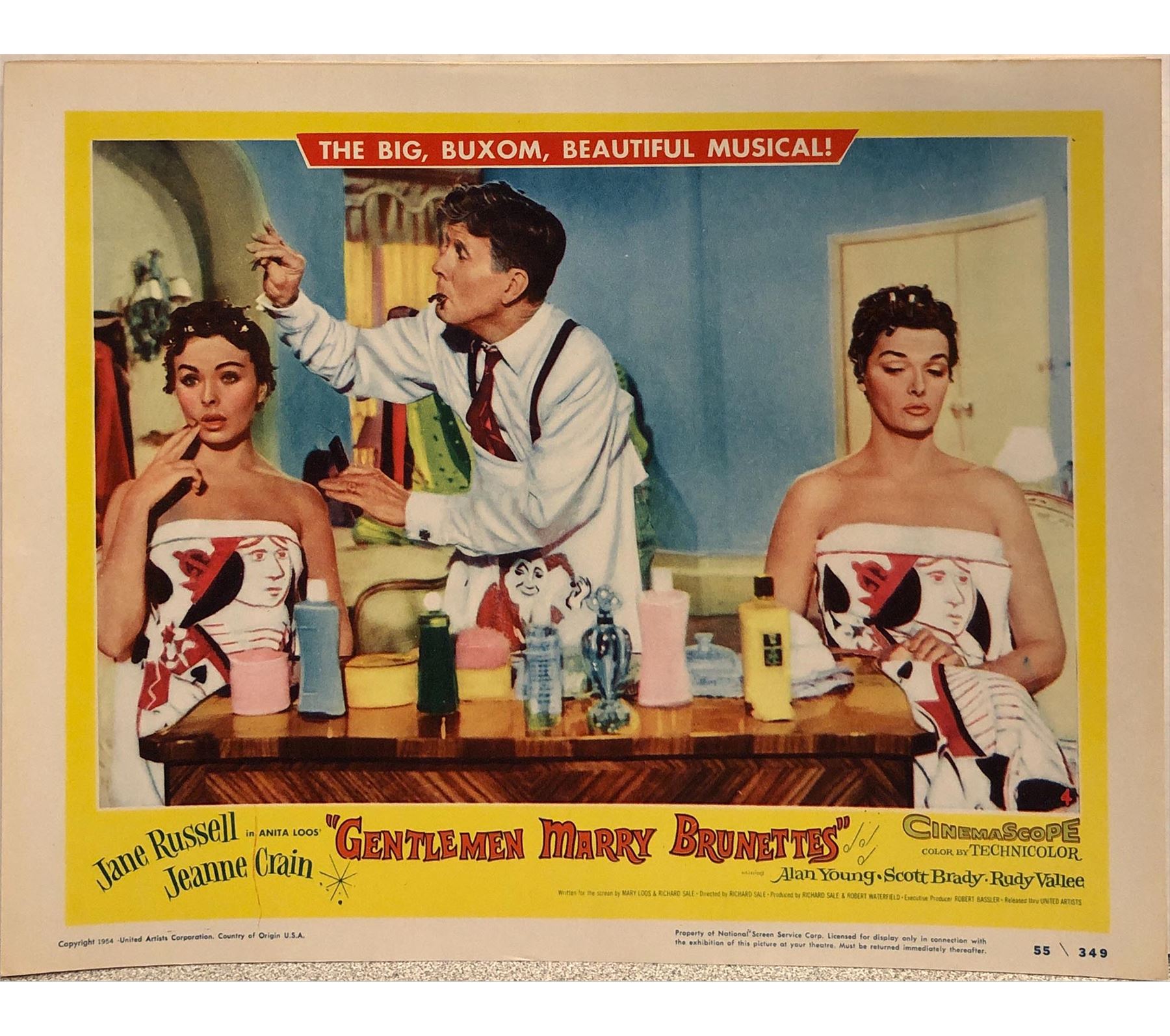 Gentlemen Marry Brunettes original 1955 vintage lobby card on heavy card stock. 11x14 inches