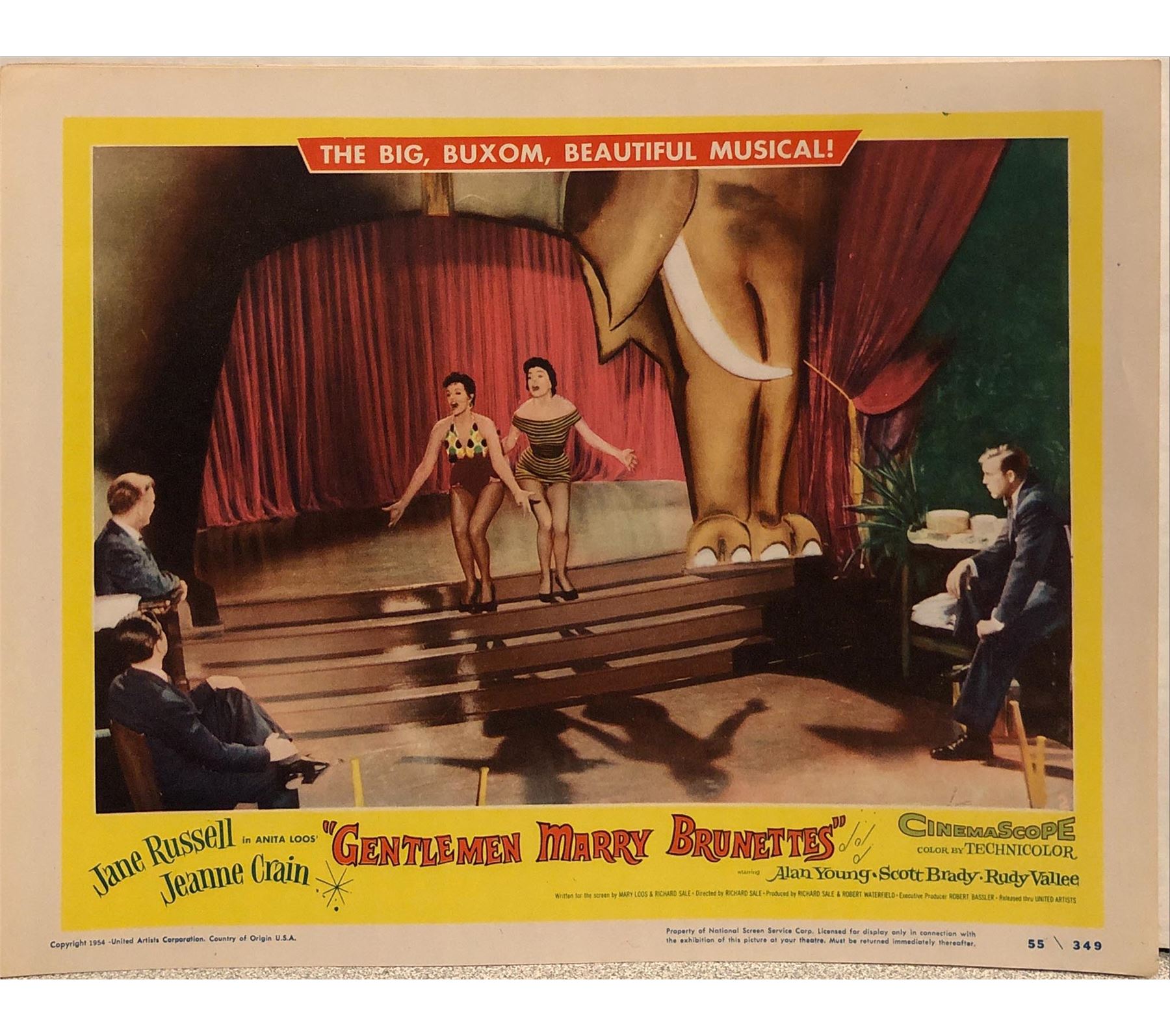 Gentlemen Marry Brunettes original 1955 vintage lobby card on heavy card stock. 11x14 inches