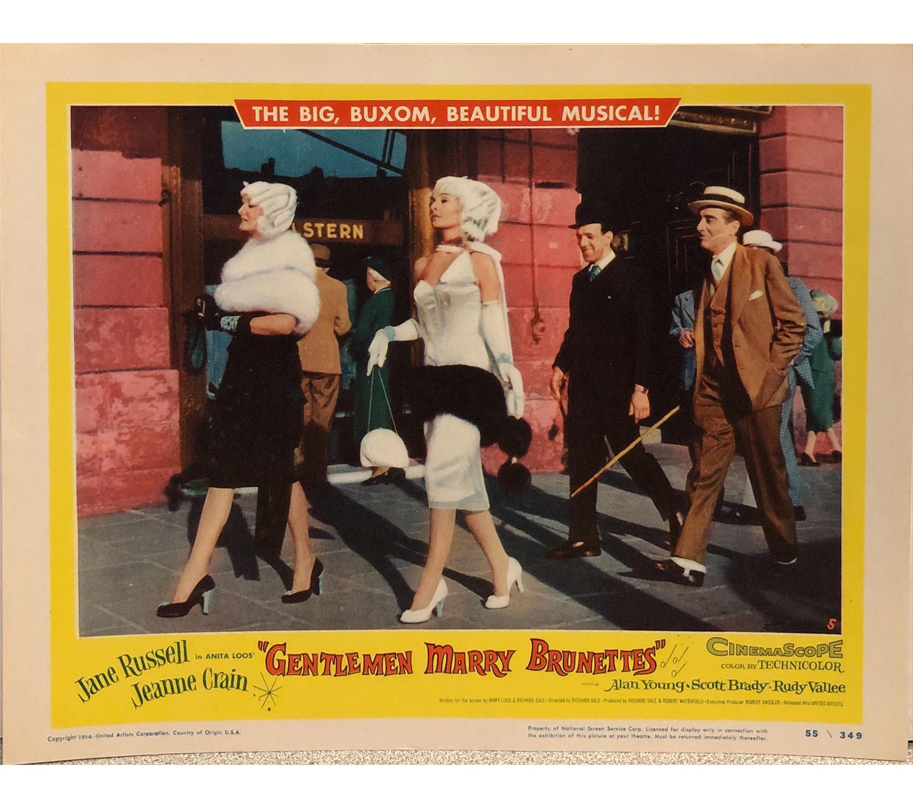 Gentlemen Marry Brunettes original 1955 vintage lobby card on heavy card stock. 11x14 inches