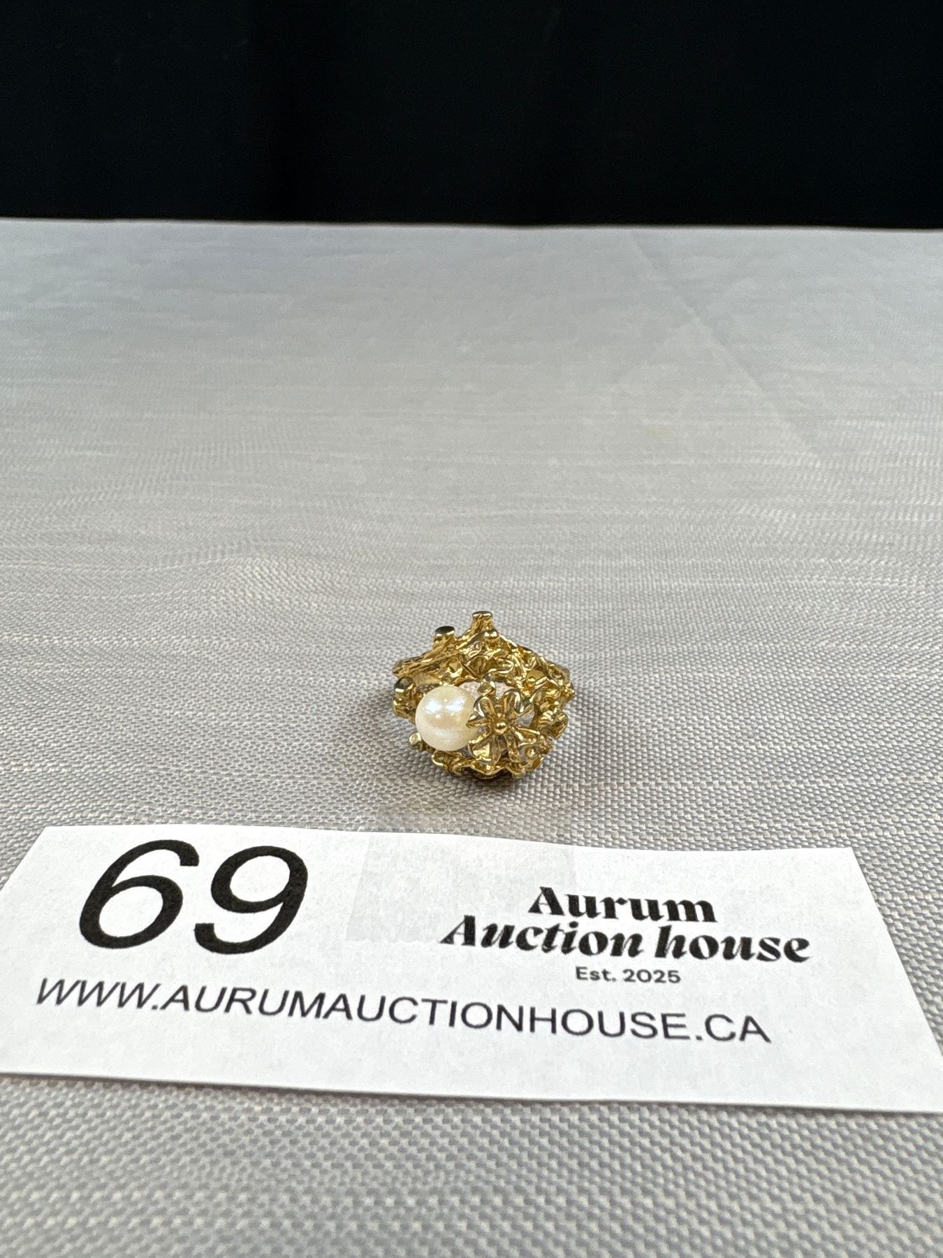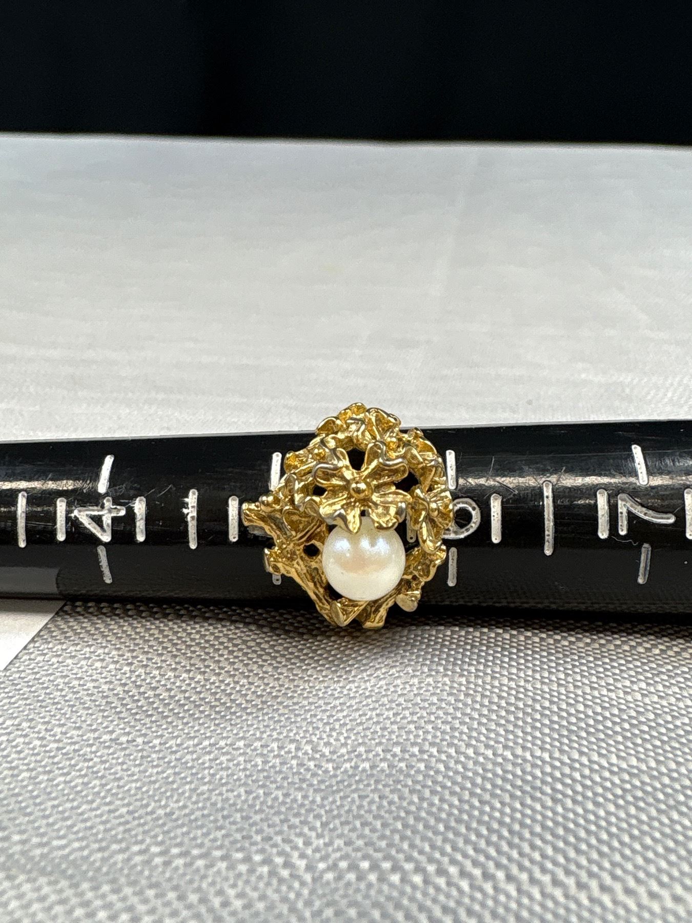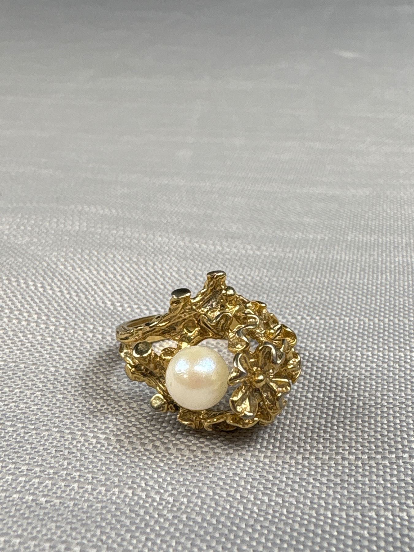 Genuine Large Pearl Gold Plate Vintage Ring Solid