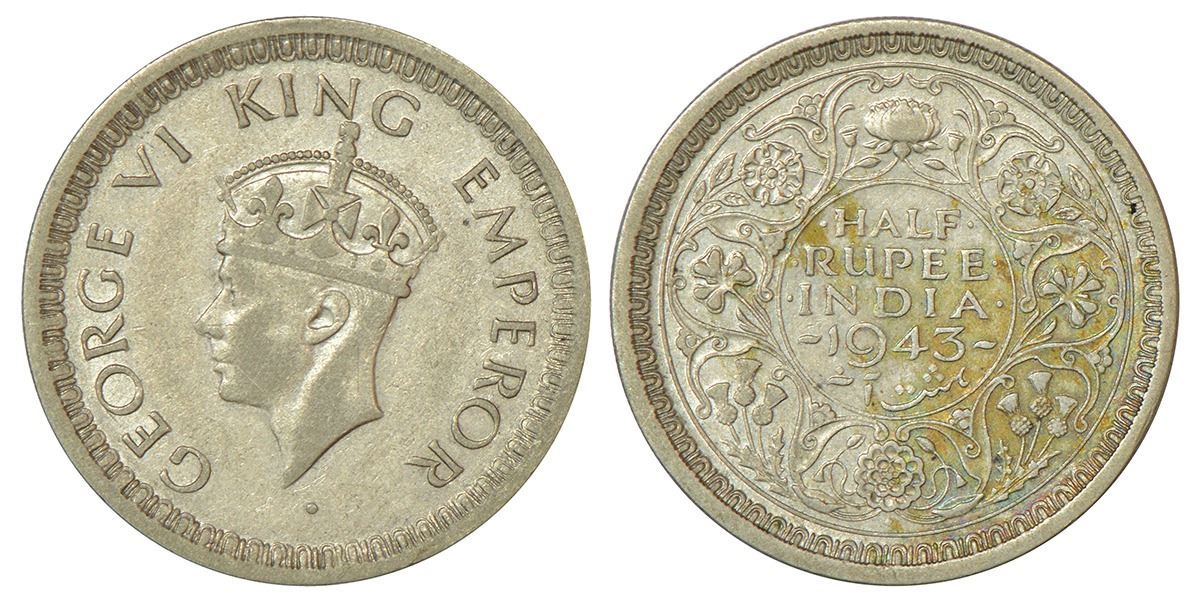 George VI, half silver ½ rupee, 1943, Bombay mint, Rev III diamond, unlisted in PR, GK 1306, 5.83g.