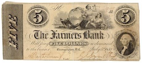 Georgetown, D.C. 1852 $5 Farmers Bank Obsolete Note