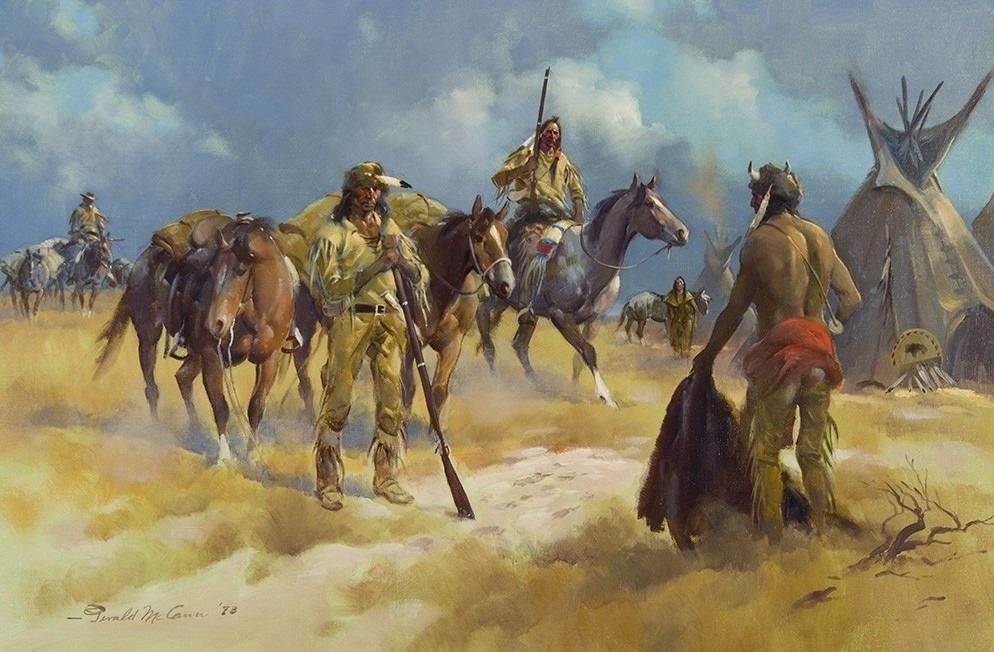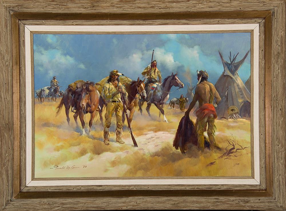 Artist: Gerald McCann; Title: The Offering; Medium: Oil on canvas; Dimensions: 20 x 30 inches; Signed: Signed and dated 83 lower left; Framed/Base: 29 x 39 inches