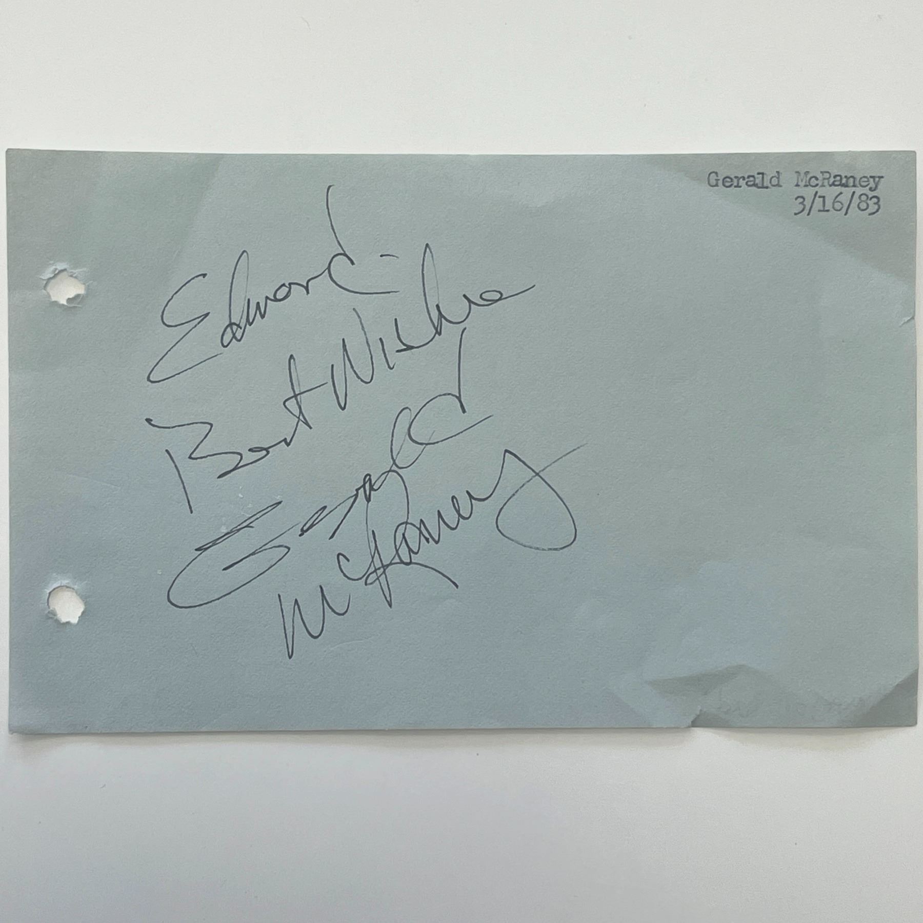 Gerald McRaney original signature - 3/16/83. 6x4 inches