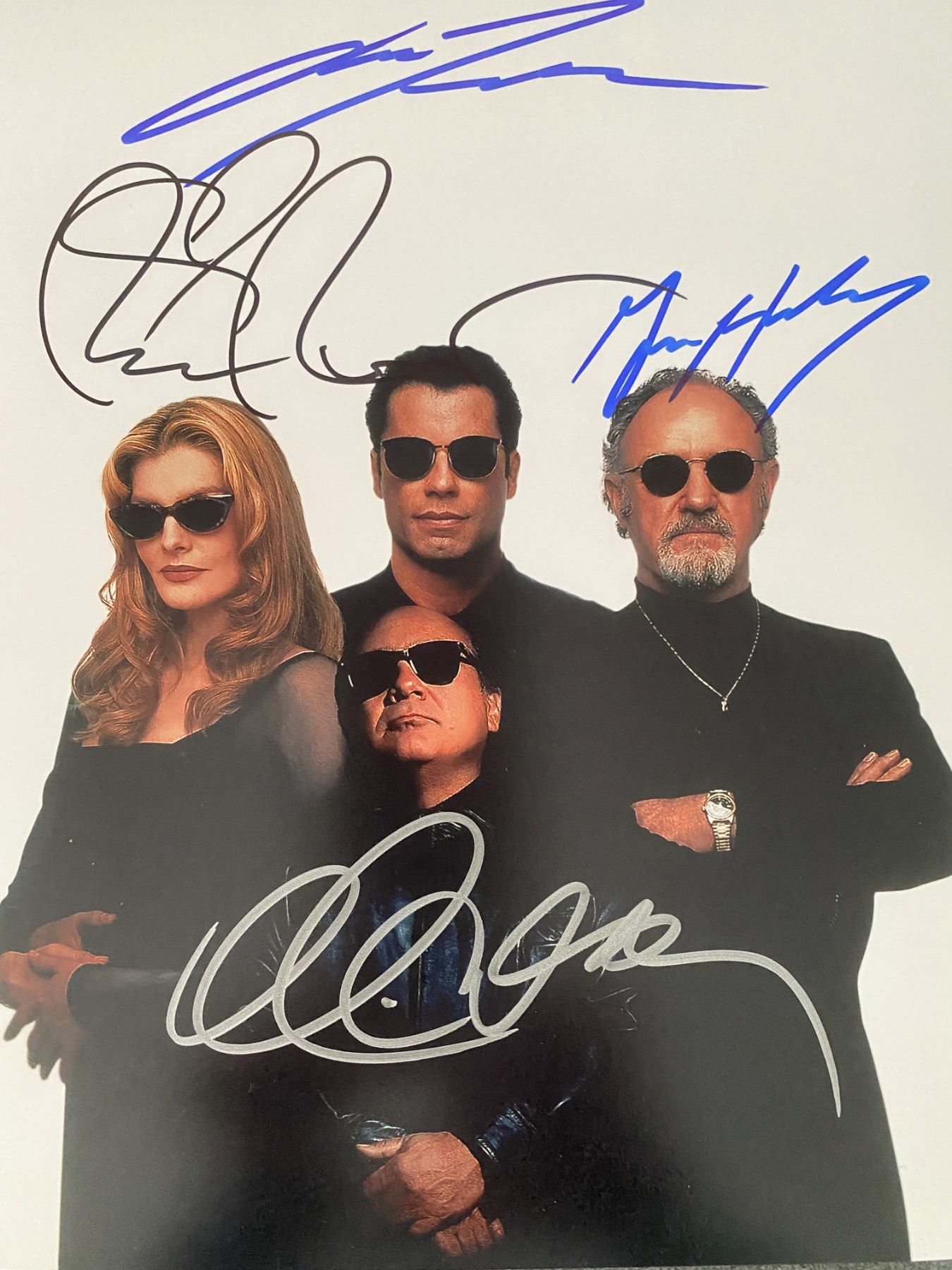 Get Shorty cast signed movie photo autographed by John Travolta, Rene Russo, Danny DeVito and Gene Hackman. 8x10 inches