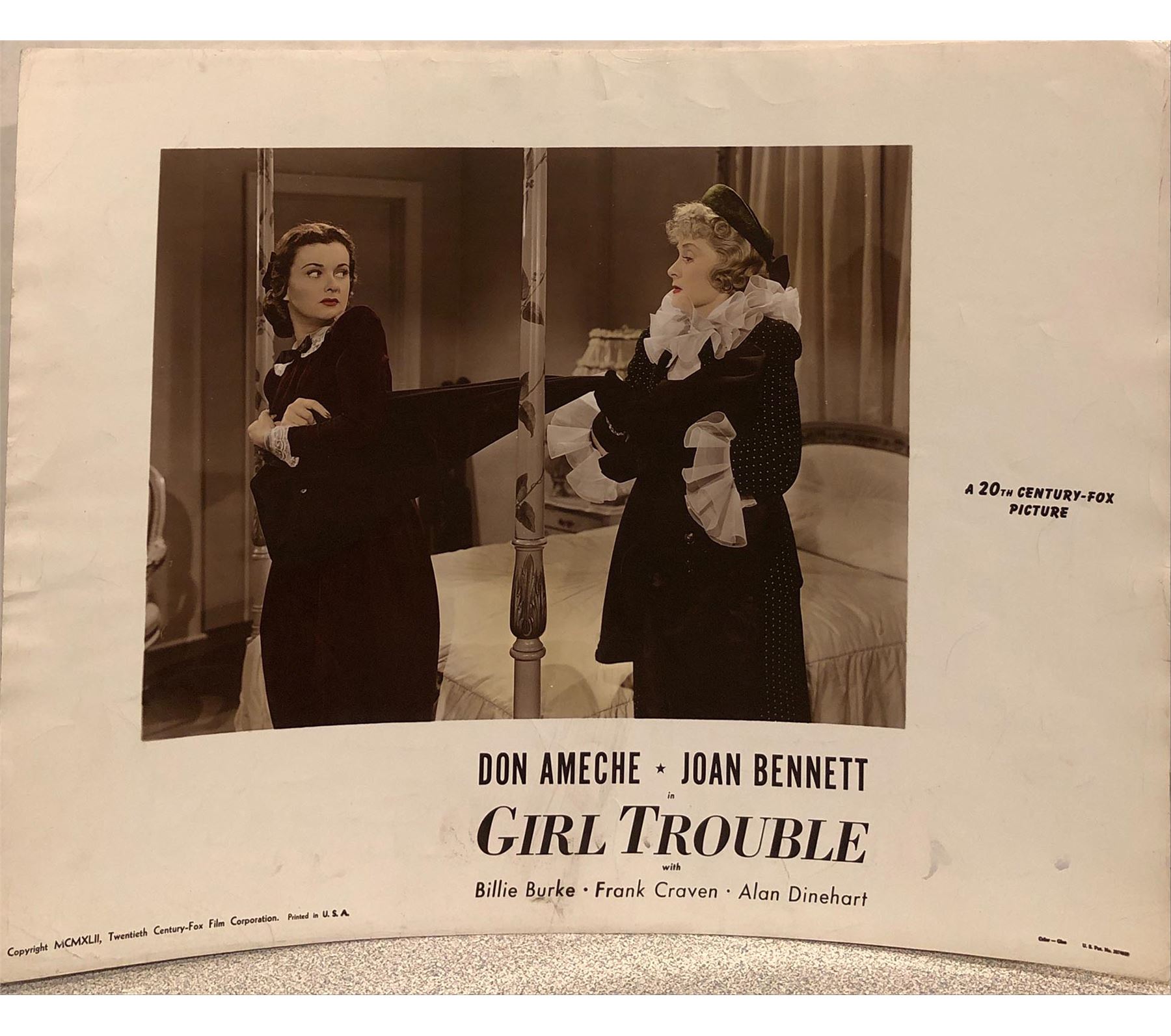 Girl Trouble original 1942 vintage lobby card on heavy card stock. 11x14 inches